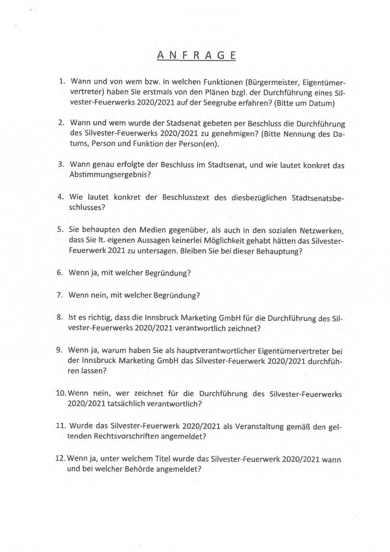 der Innsbruck Marketing GmbH das Silvester-Feuerwerk 2020/2021 durchführen lassen?