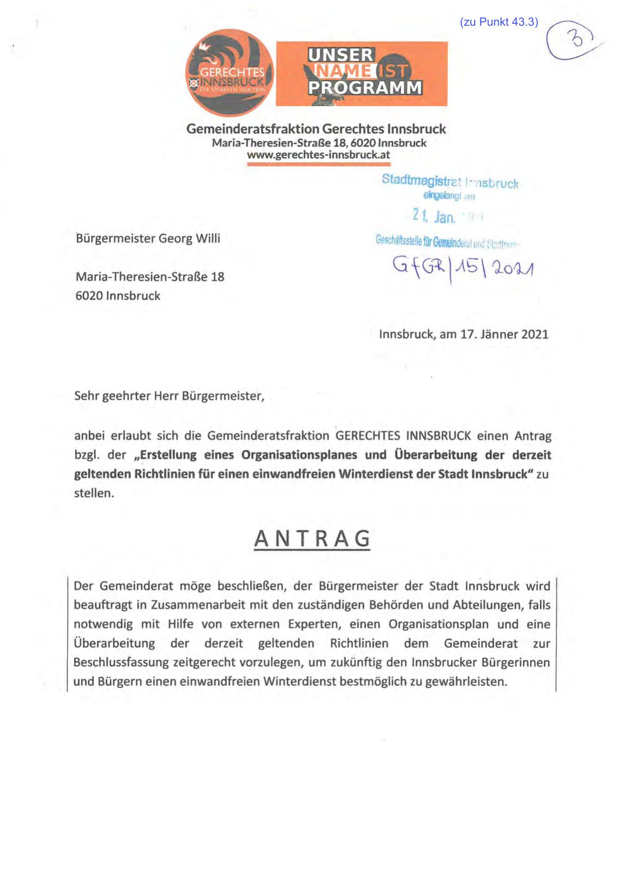anbei erlaubt sich die Gemeinderatsfraktion GERECHTES INNSBRUCK einen Antrag