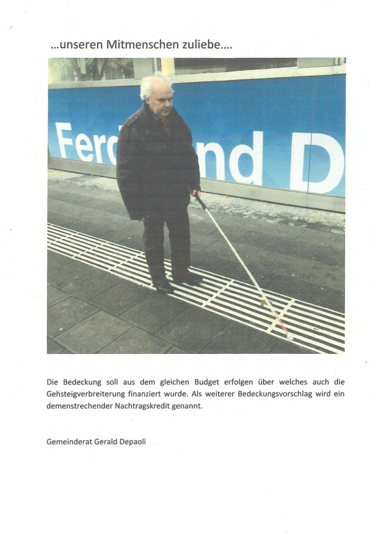 Gensteigverbreiterung finanziert wurde. Als weiterer Bedeckungsvorschlag wird ein