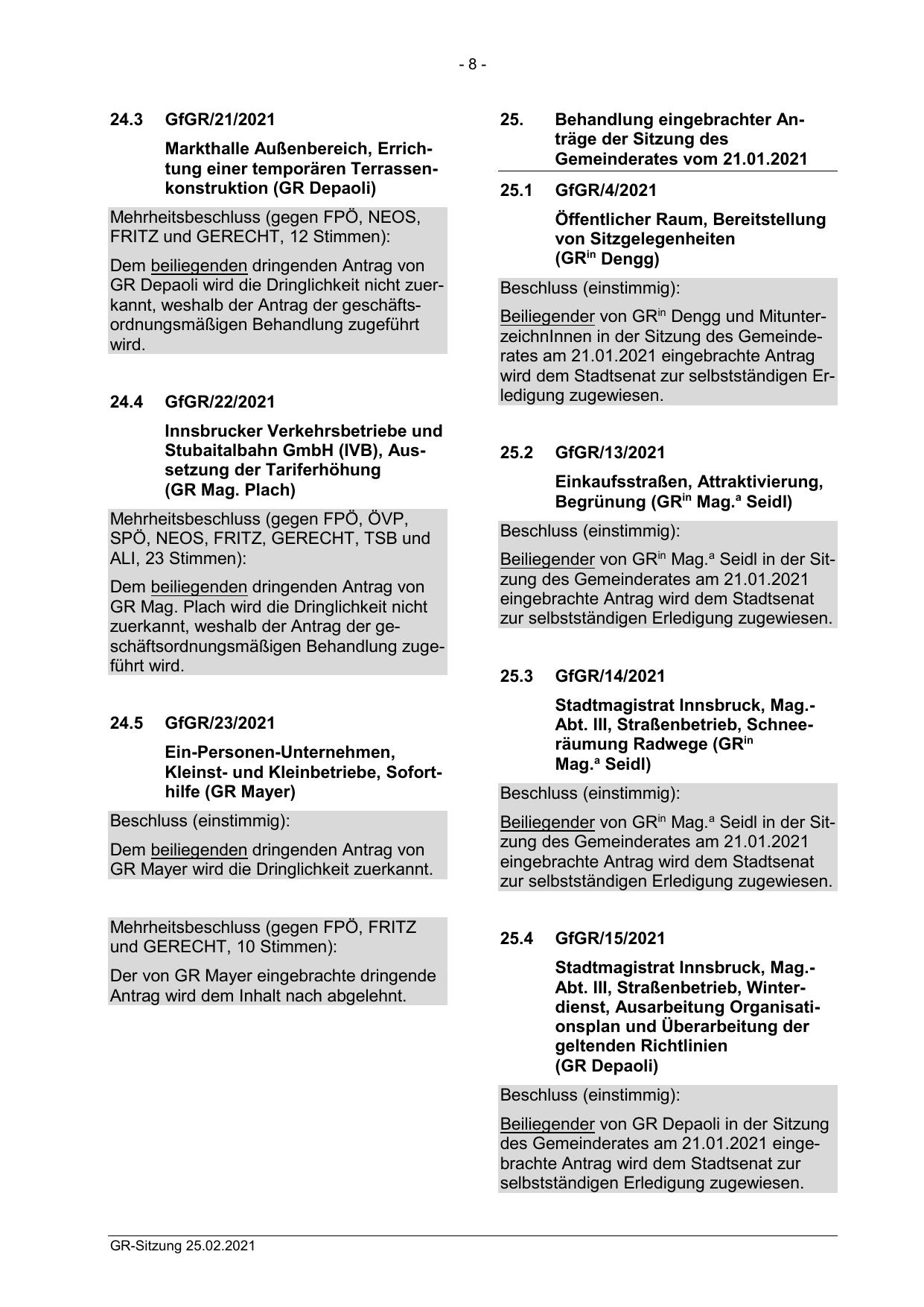 Beiliegender von GRin Dengg und MitunterzeichnInnen in der Sitzung des Gemeinderates am 21.01.2021 eingebrachte Antrag