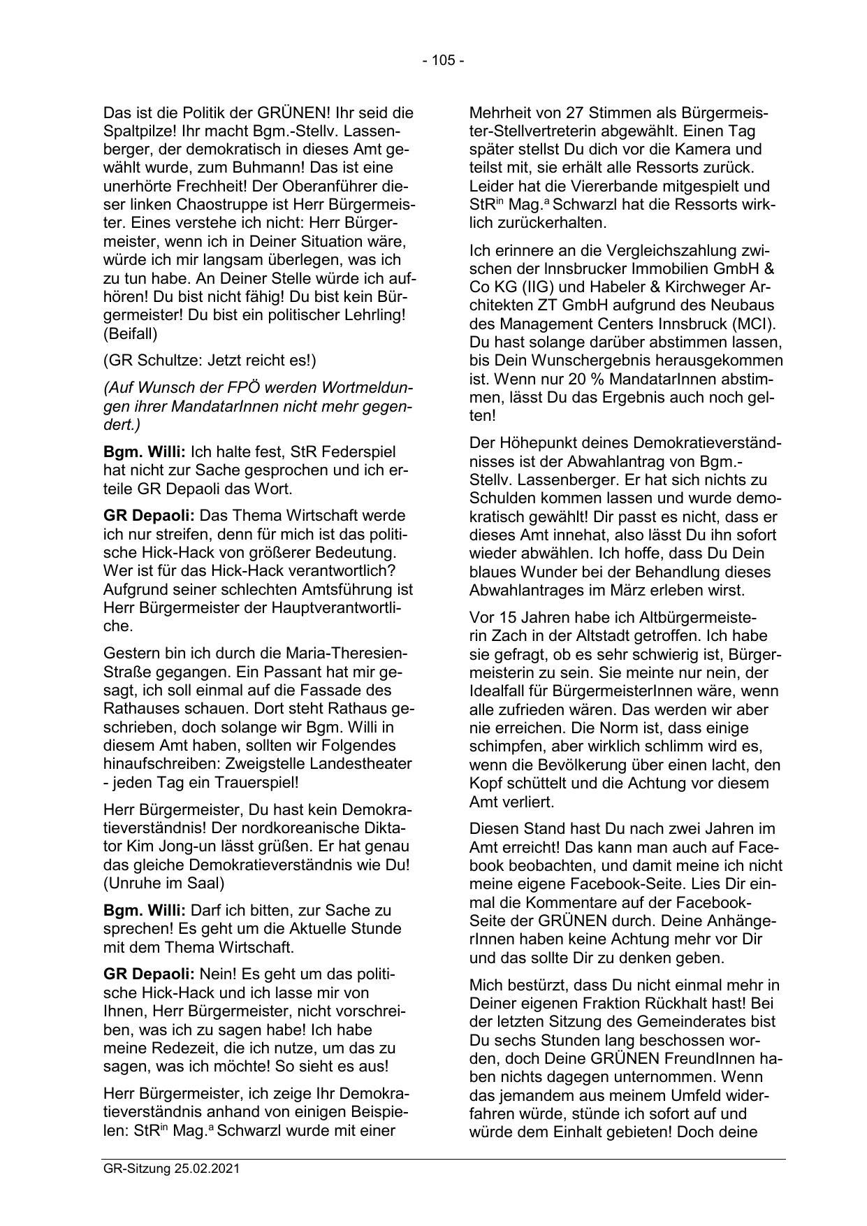 GR Depaoli: Nein! Es geht um das politische Hick-Hack und ich lasse mir von