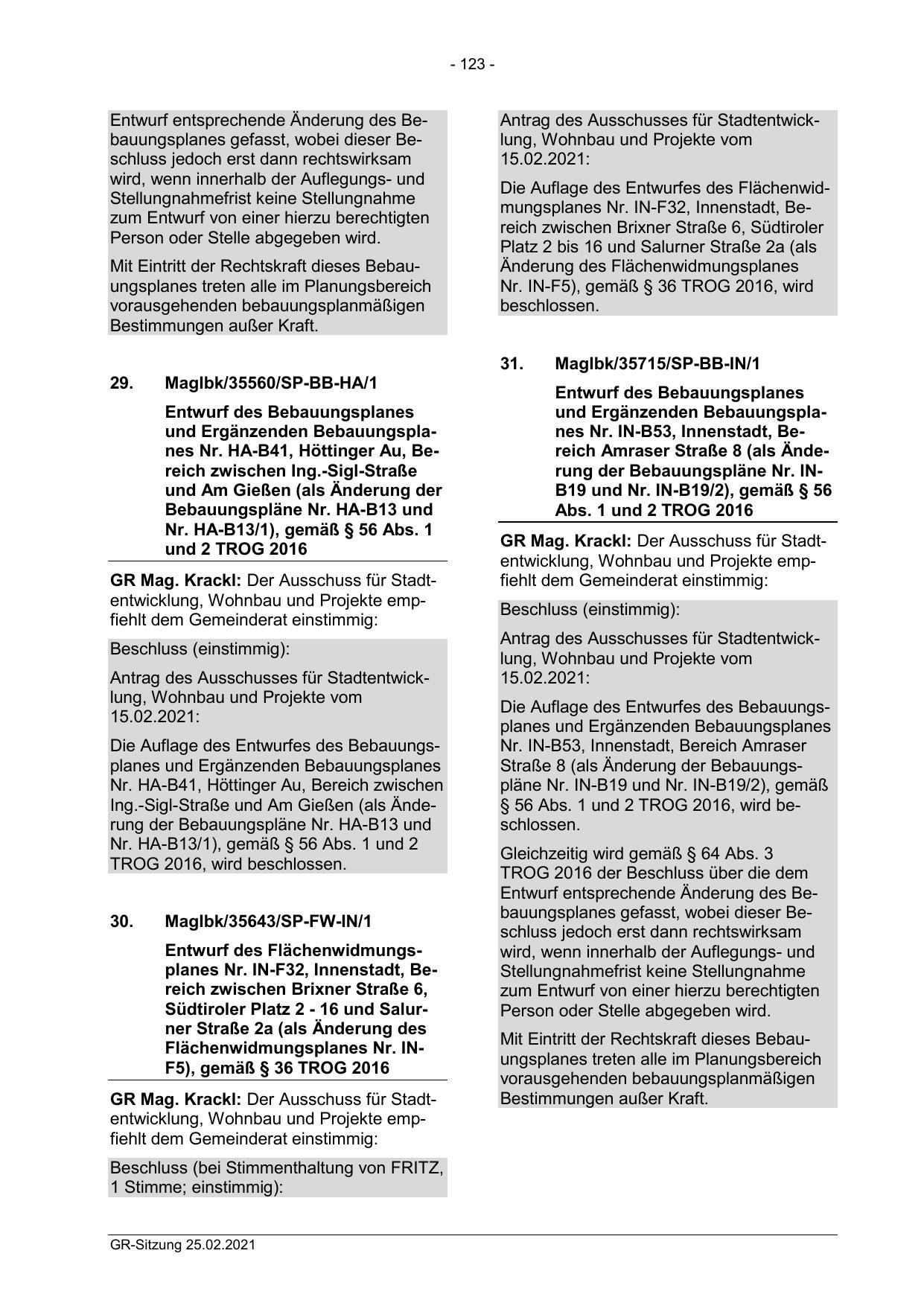 § 56 Abs. 1 und 2 TROG 2016, wird beschlossen.