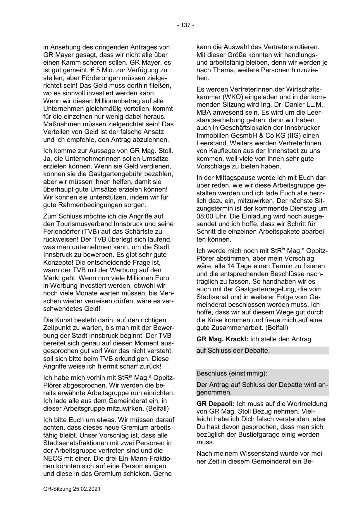 Ich habe mich vorhin mit StRin Mag.a OppitzPlörer abgesprochen. Wir werden die bereits erwähnte Arbeitsgruppe nun einrichten.