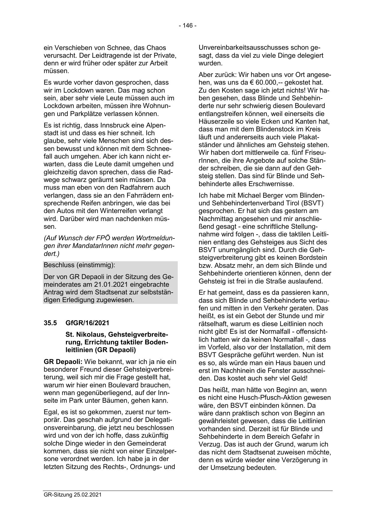 Der von GR Depaoli in der Sitzung des Gemeinderates am 21.01.2021 eingebrachte