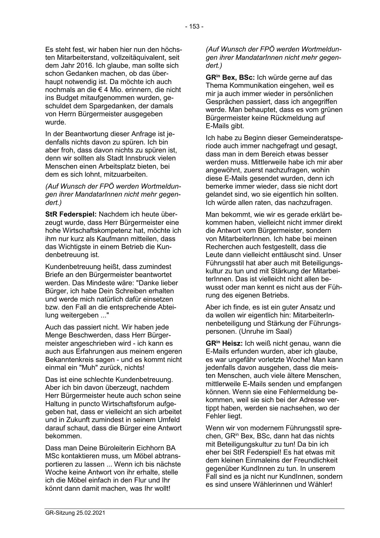 (Auf Wunsch der FPÖ werden Wortmeldungen ihrer MandatarInnen nicht mehr gegendert.)