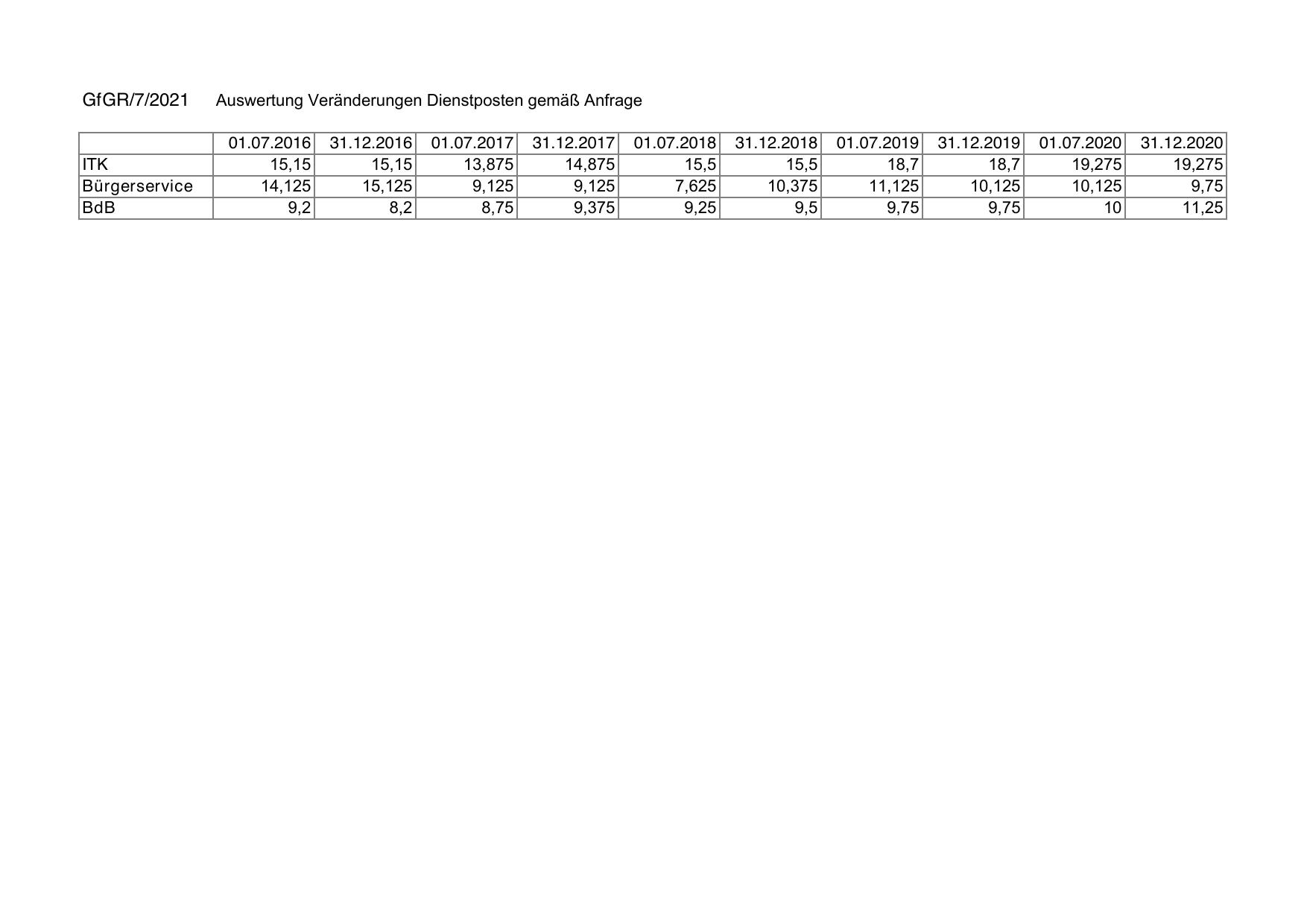 Auswertung Veränderungen Dienstposten gemäß Anfrage