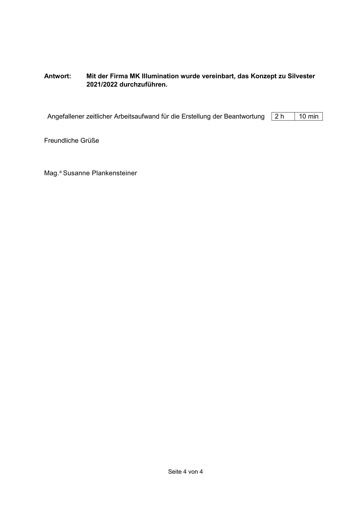 Angefallener zeitlicher Arbeitsaufwand für die Erstellung der Beantwortung