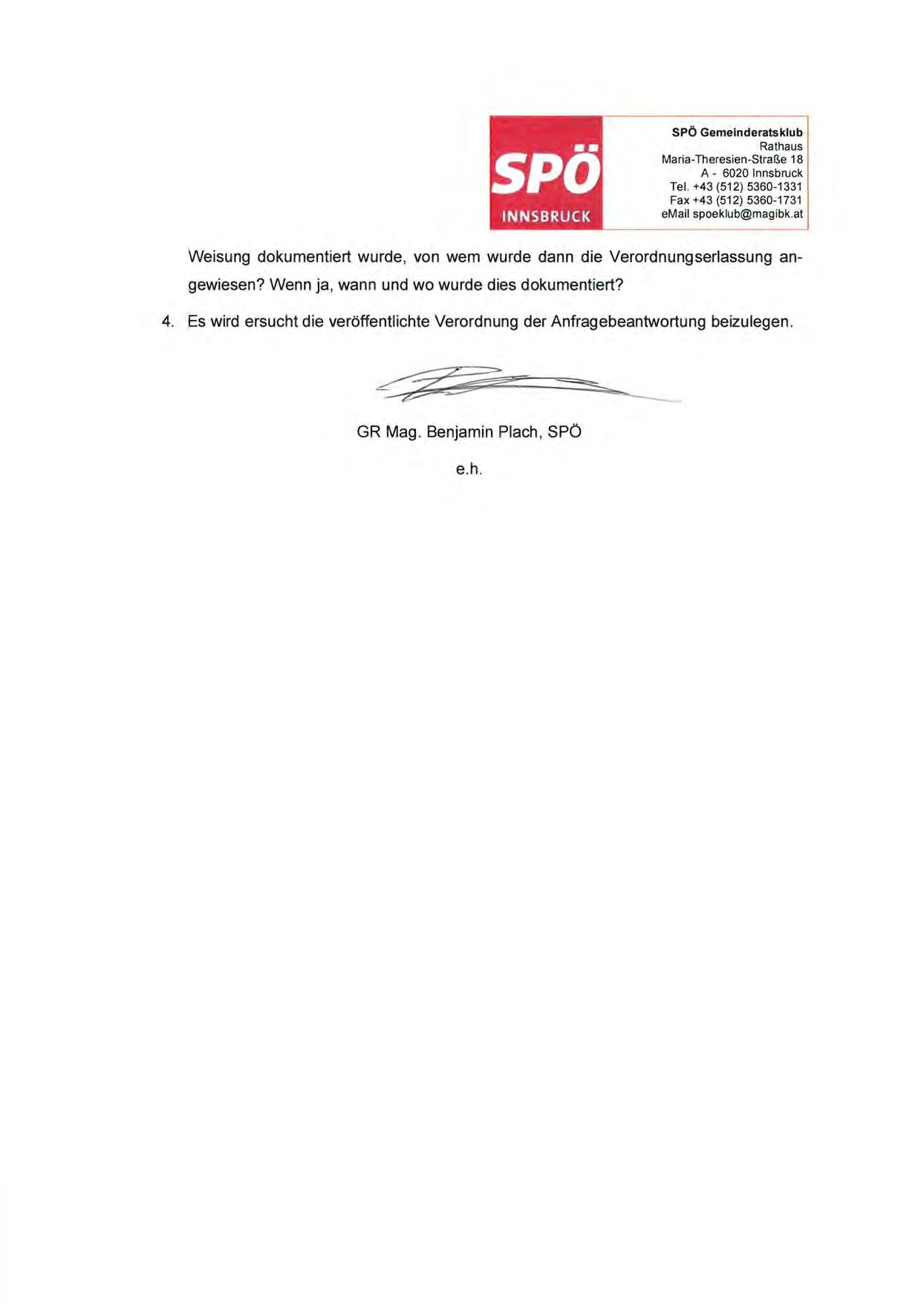 4. Es wird ersucht die veröffentlichte Verordnung der Anfragebeantwortung beizulegen .