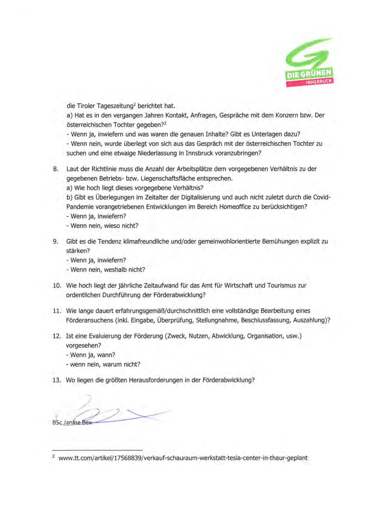 suchen und eine etwaige Niederlassung in Innsbruck voranzubringen?