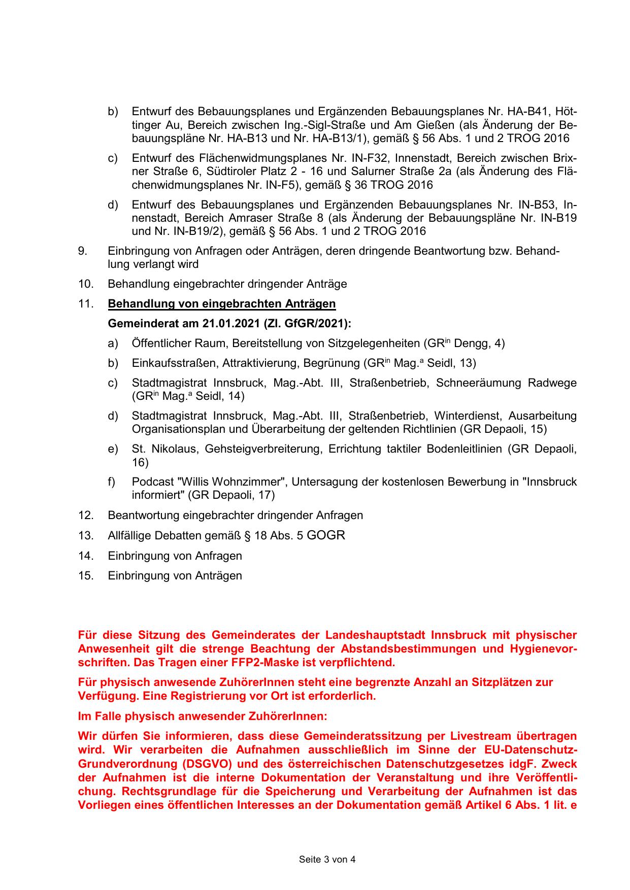 Gemeinderat am 21.01.2021 (Zl. GfGR/2021):