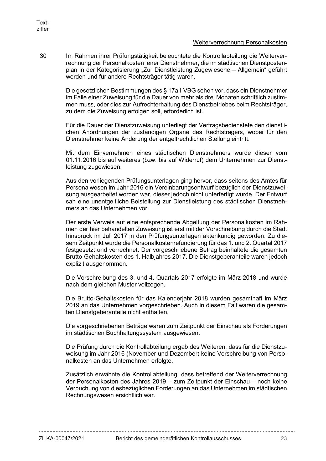 Der erste Verweis auf eine entsprechende Abgeltung der Personalkosten im Rahmen der hier behandelten Zuweisung ist erst mit der Vorschreibung durch die Stadt