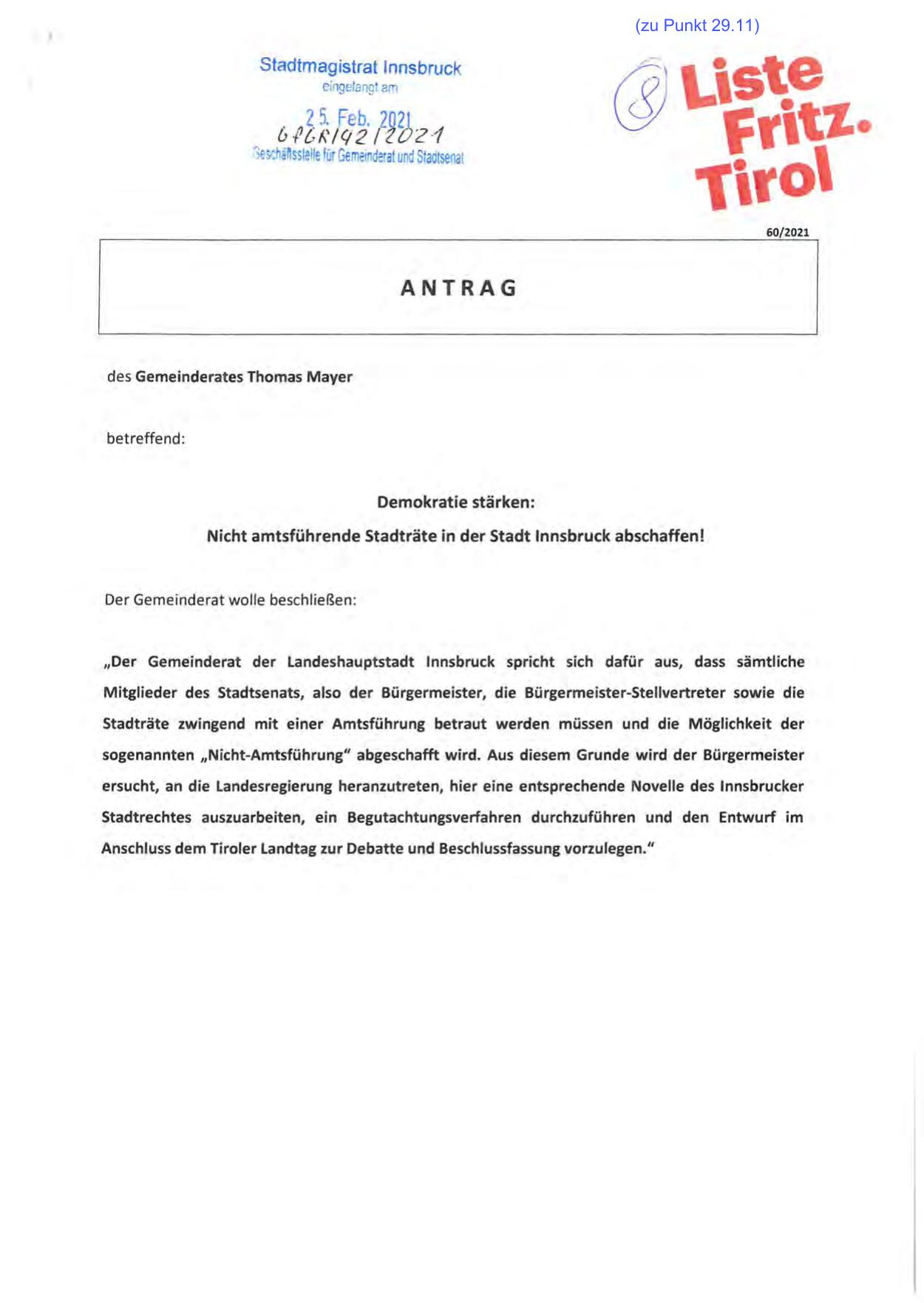 „Der Gemeinderat der Landeshauptstadt Innsbruck spricht sich dafür aus, dass sämtliche
