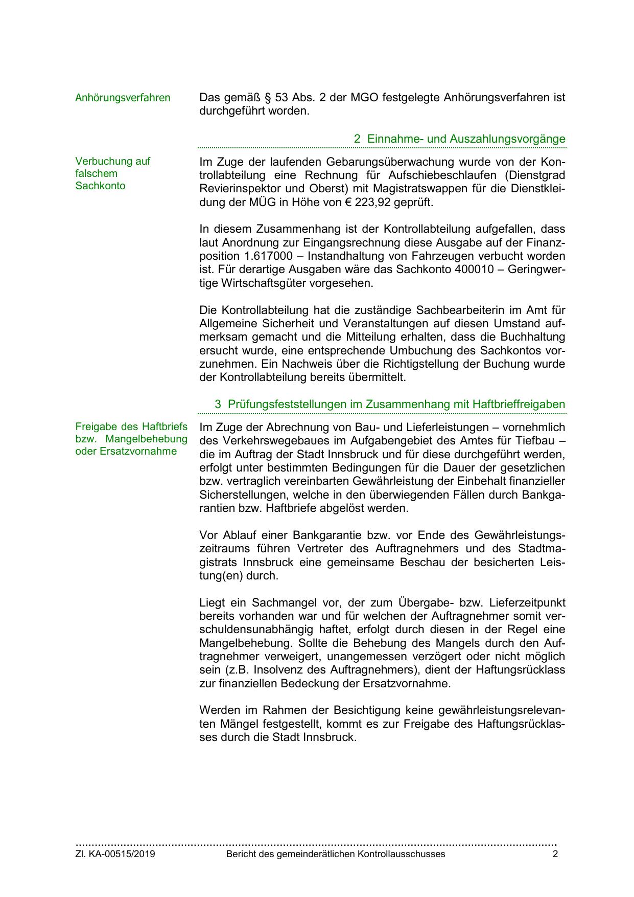 Vor Ablauf einer Bankgarantie bzw. vor Ende des Gewährleistungszeitraums führen Vertreter des Auftragnehmers und des Stadtmagistrats Innsbruck eine gemeinsame Beschau der besicherten Leistung(en) durch.