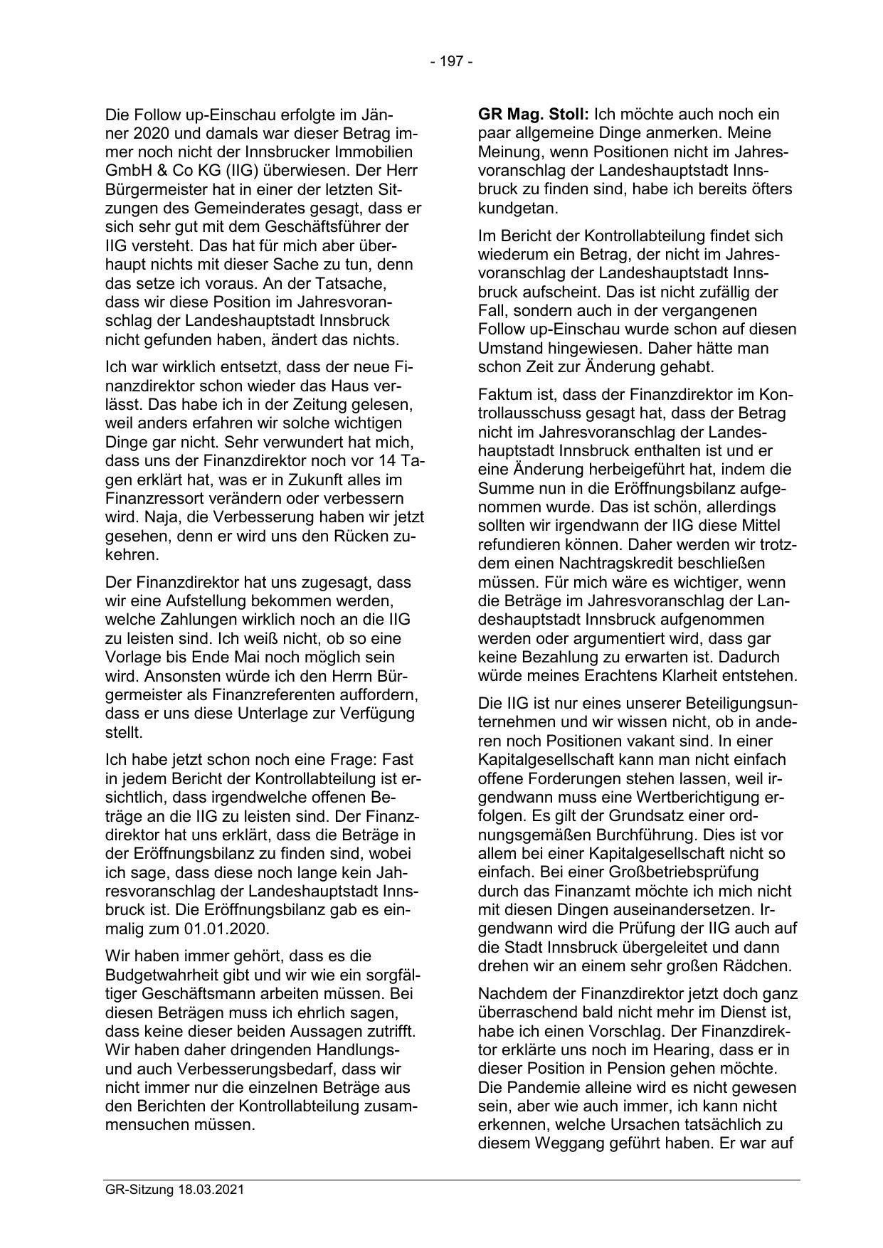 Meinung, wenn Positionen nicht im Jahresvoranschlag der Landeshauptstadt Innsbruck zu finden sind, habe ich bereits öfters
