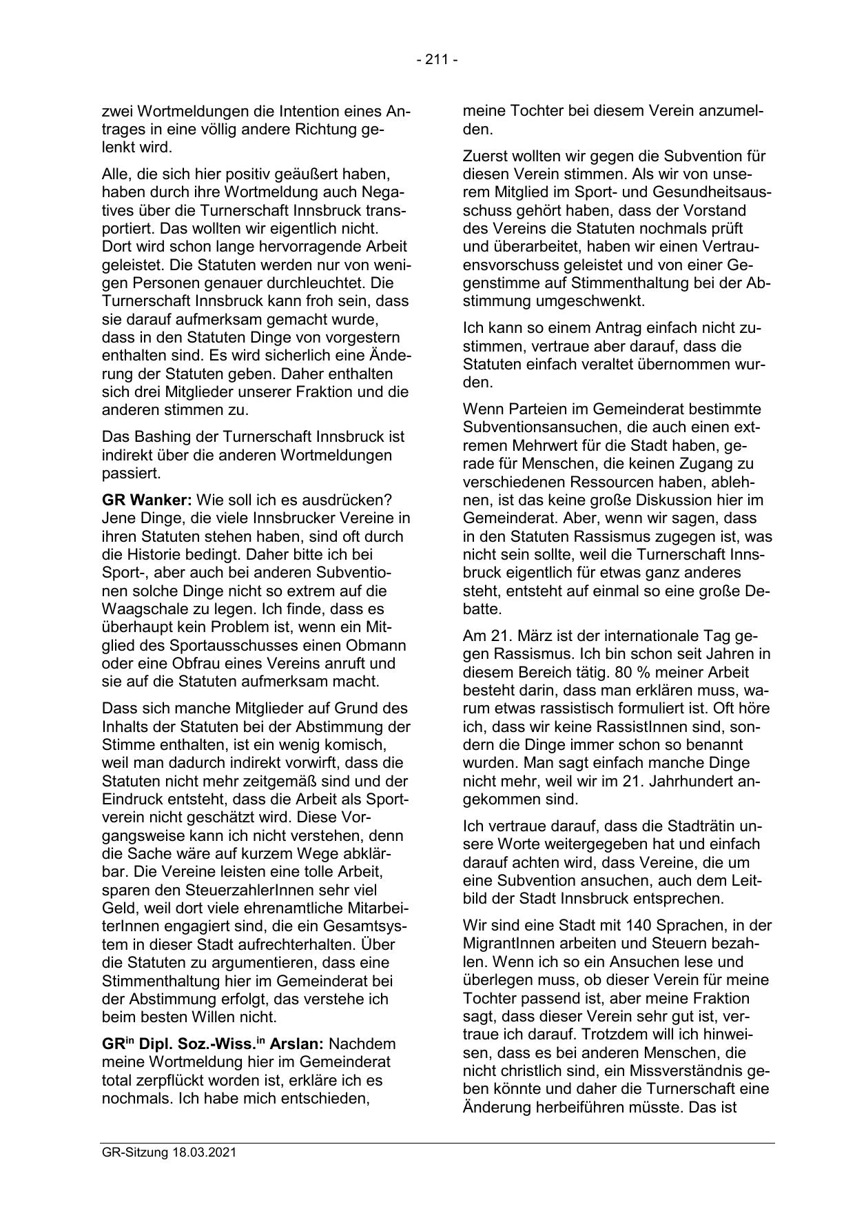 haben durch ihre Wortmeldung auch Negatives über die Turnerschaft Innsbruck transportiert. Das wollten wir eigentlich nicht.
