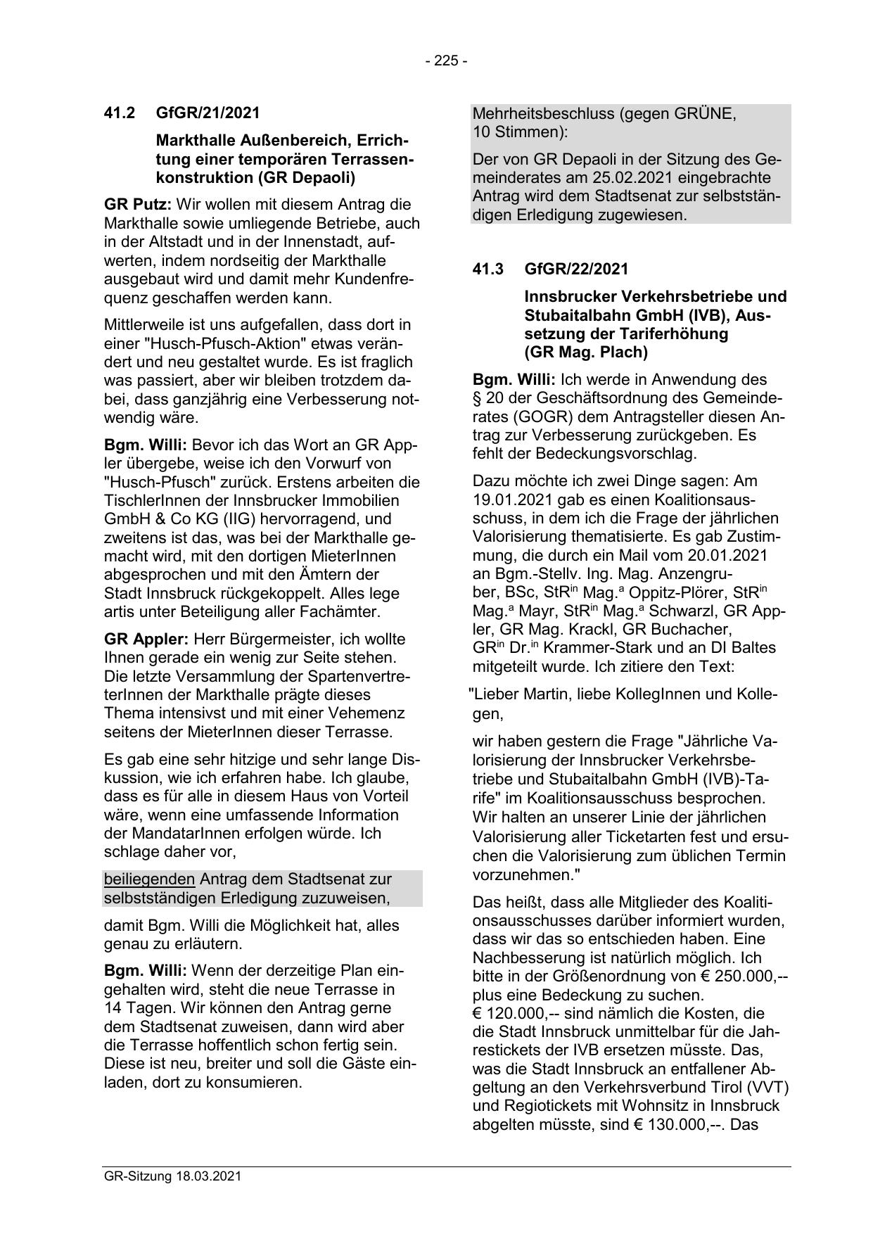 Der von GR Depaoli in der Sitzung des Gemeinderates am 25.02.2021 eingebrachte