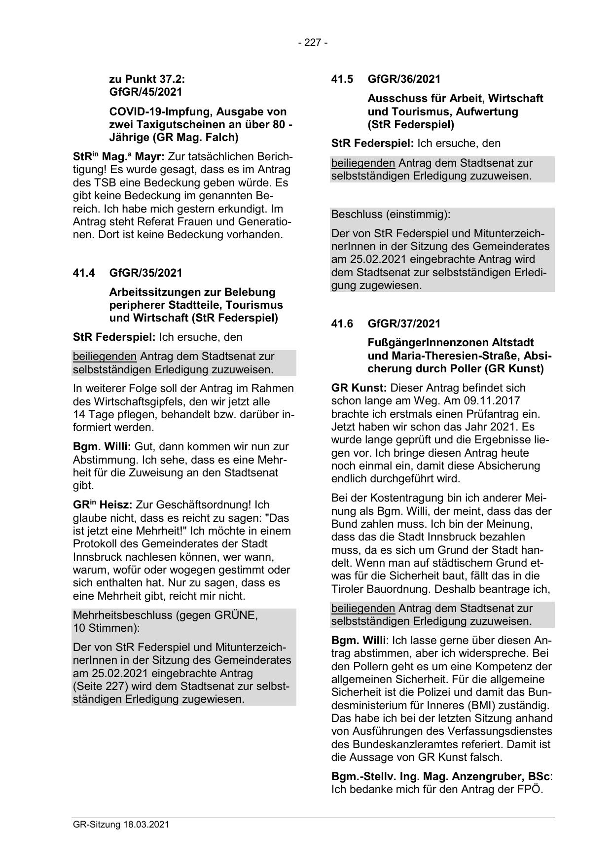 (Seite 227) wird dem Stadtsenat zur selbstständigen Erledigung zugewiesen.