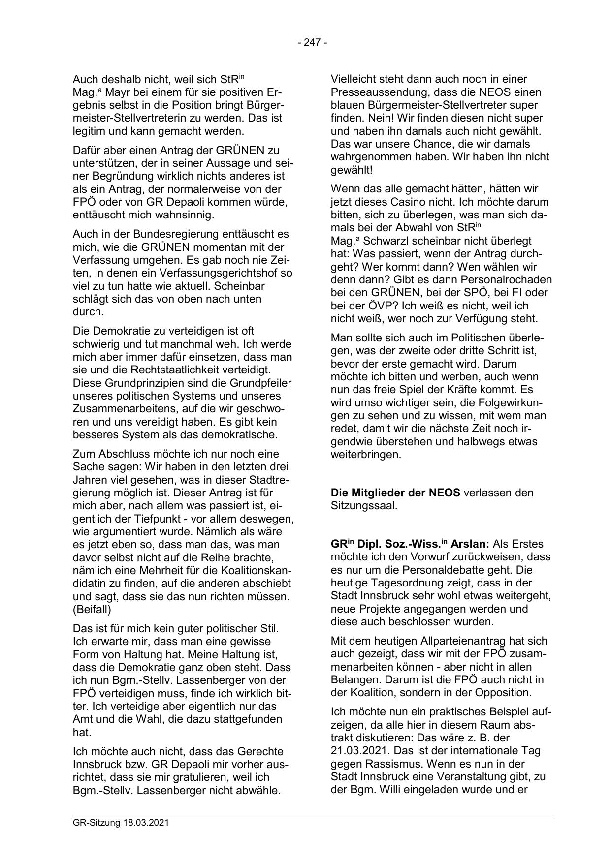 Innsbruck bzw. GR Depaoli mir vorher ausrichtet, dass sie mir gratulieren, weil ich