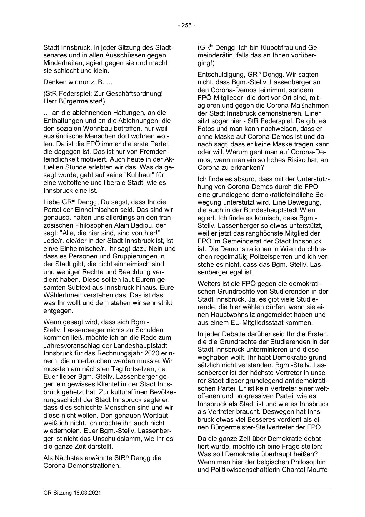 Stadt Innsbruck, in jeder Sitzung des Stadtsenates und in allen Ausschüssen gegen