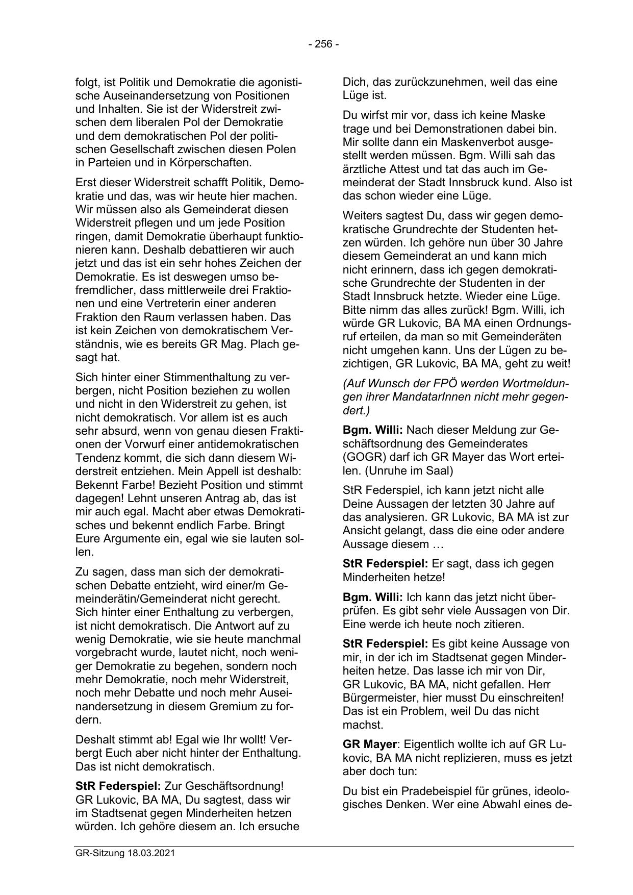 GR Mayer: Eigentlich wollte ich auf GR Lukovic, BA MA nicht replizieren, muss es jetzt