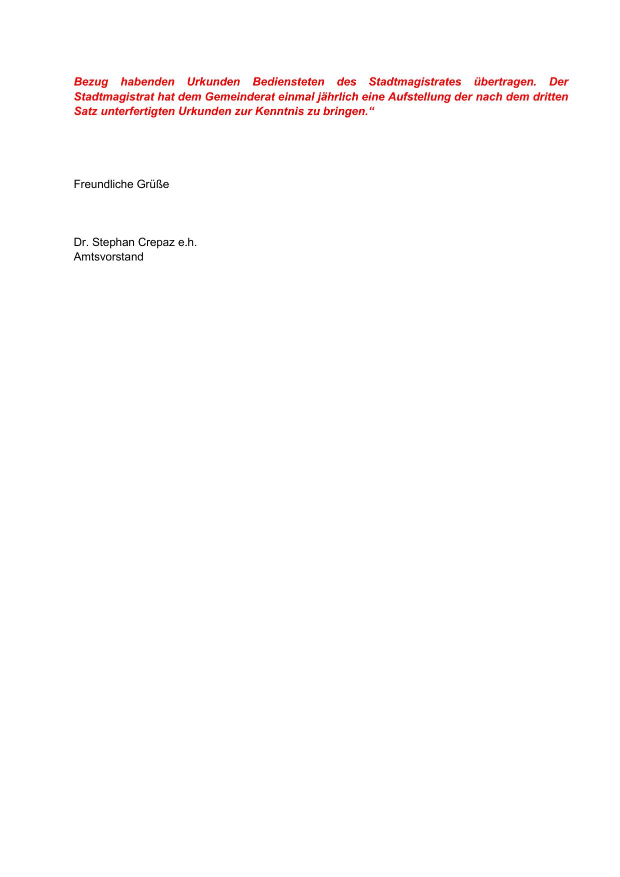 Bezug habenden Urkunden Bediensteten des Stadtmagistrates übertragen. Der
