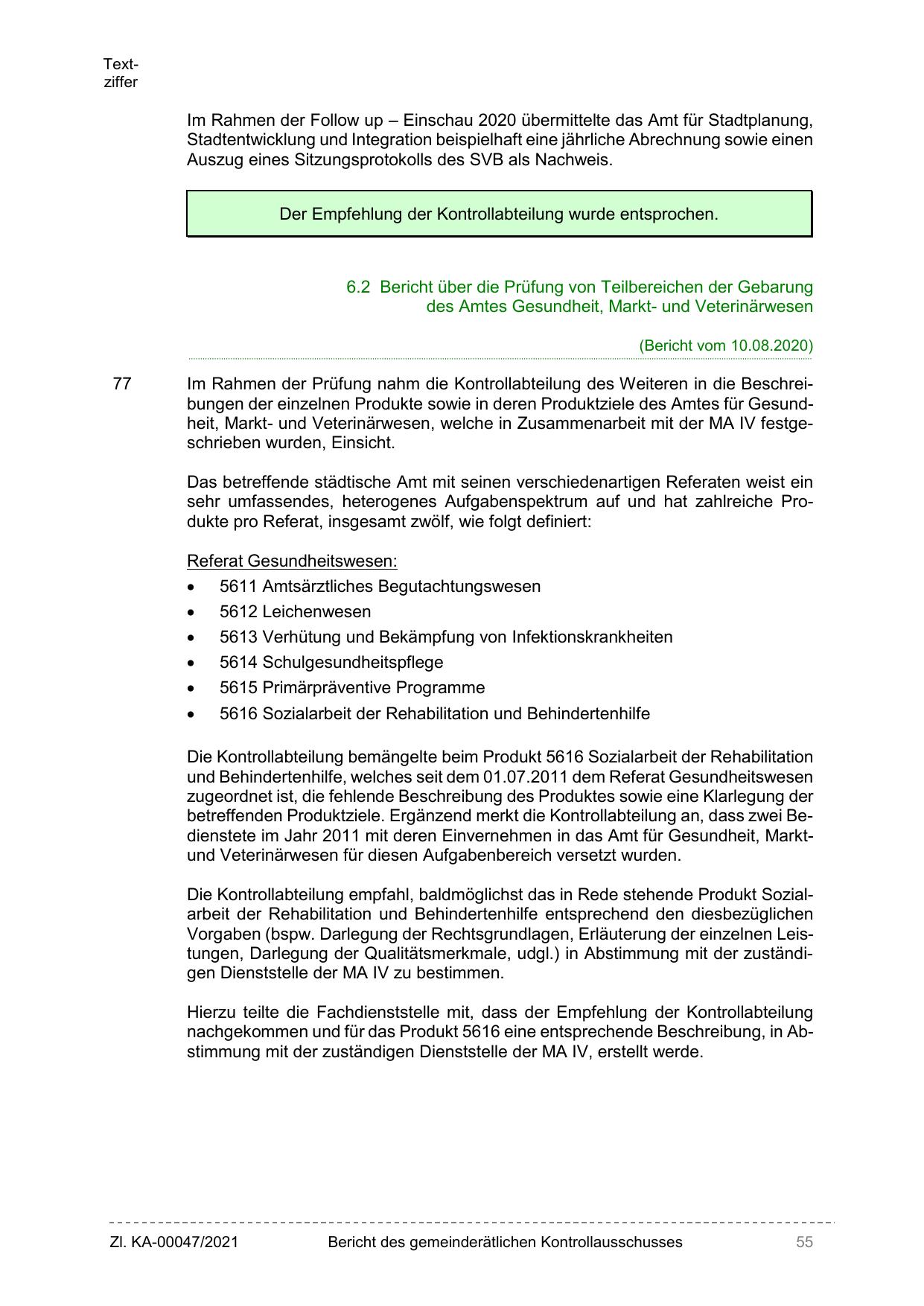 nachgekommen und für das Produkt 5616 eine entsprechende Beschreibung, in Abstimmung mit der zuständigen Dienststelle der MA IV, erstellt werde.