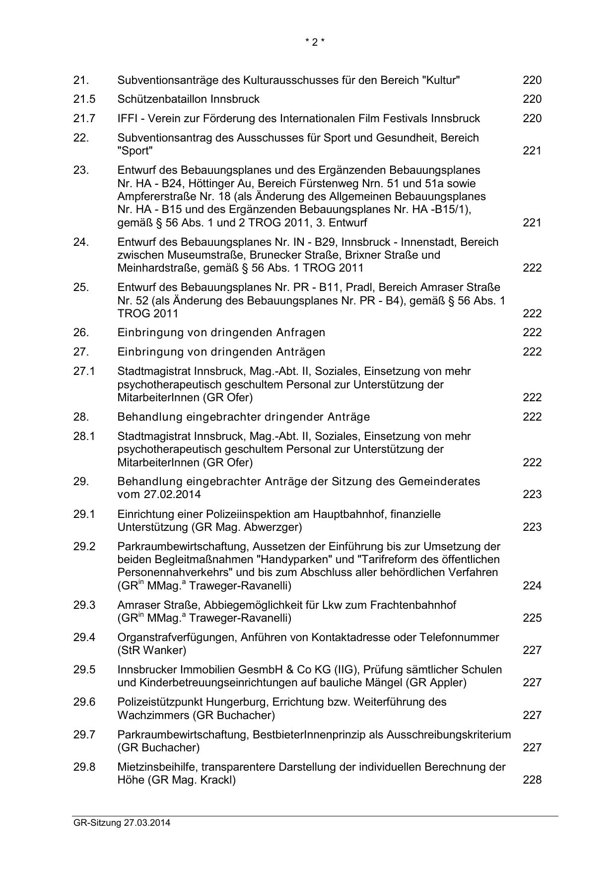 Stadtmagistrat Innsbruck, Mag.-Abt. II, Soziales, Einsetzung von mehr