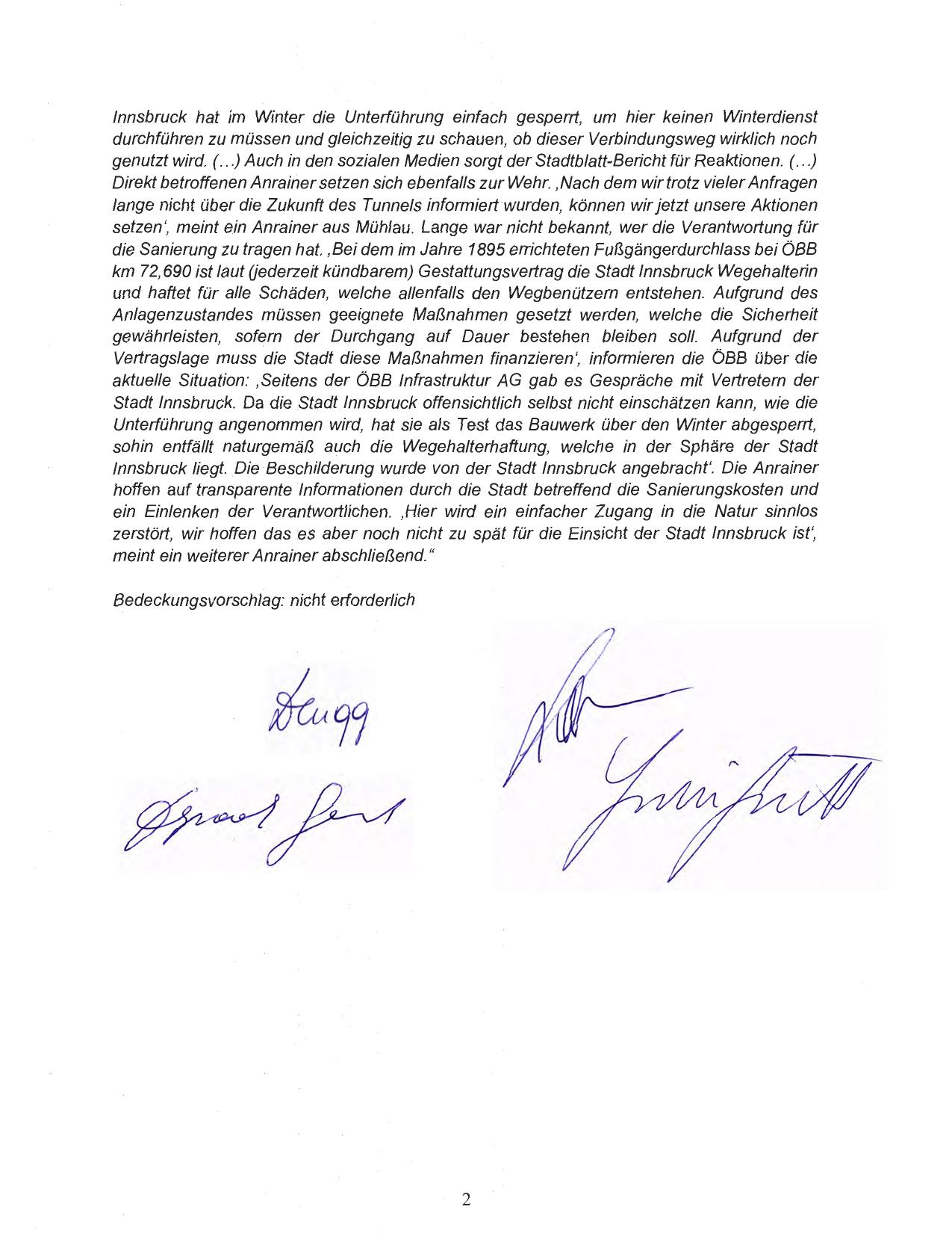 Stadt Innsbruck. Da die Stadt Innsbruck offensichtlich selbst nicht einschätzen kann, wie die