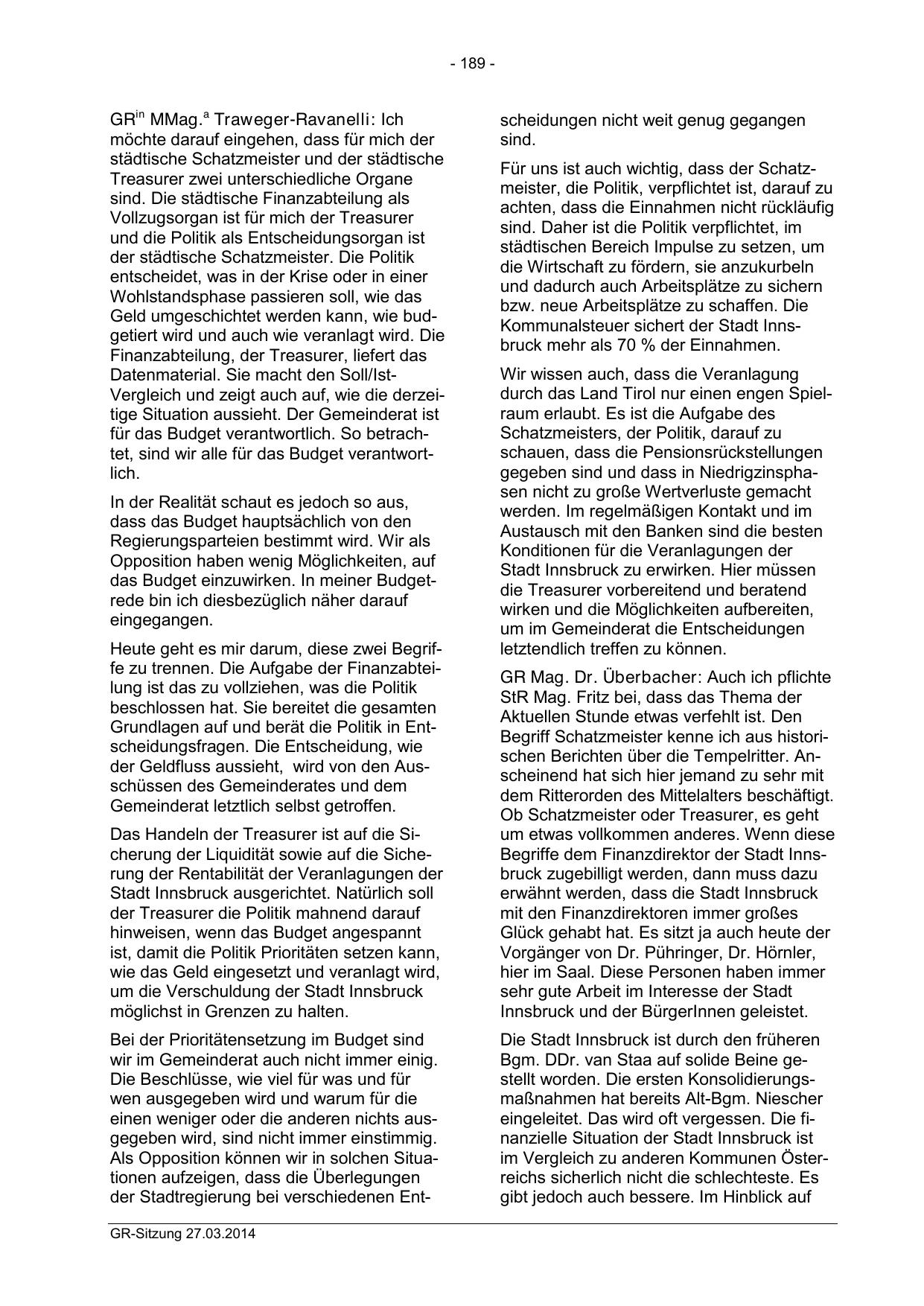 eingeleitet. Das wird oft vergessen. Die finanzielle Situation der Stadt Innsbruck ist