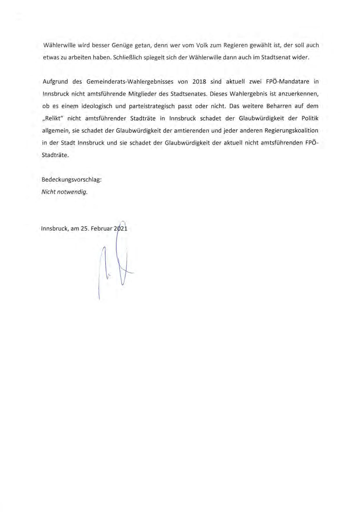 Innsbruck nicht amtsführende Mitglieder des Stadtsenates. Dieses Wahlergebnis ist anzuerkennen,