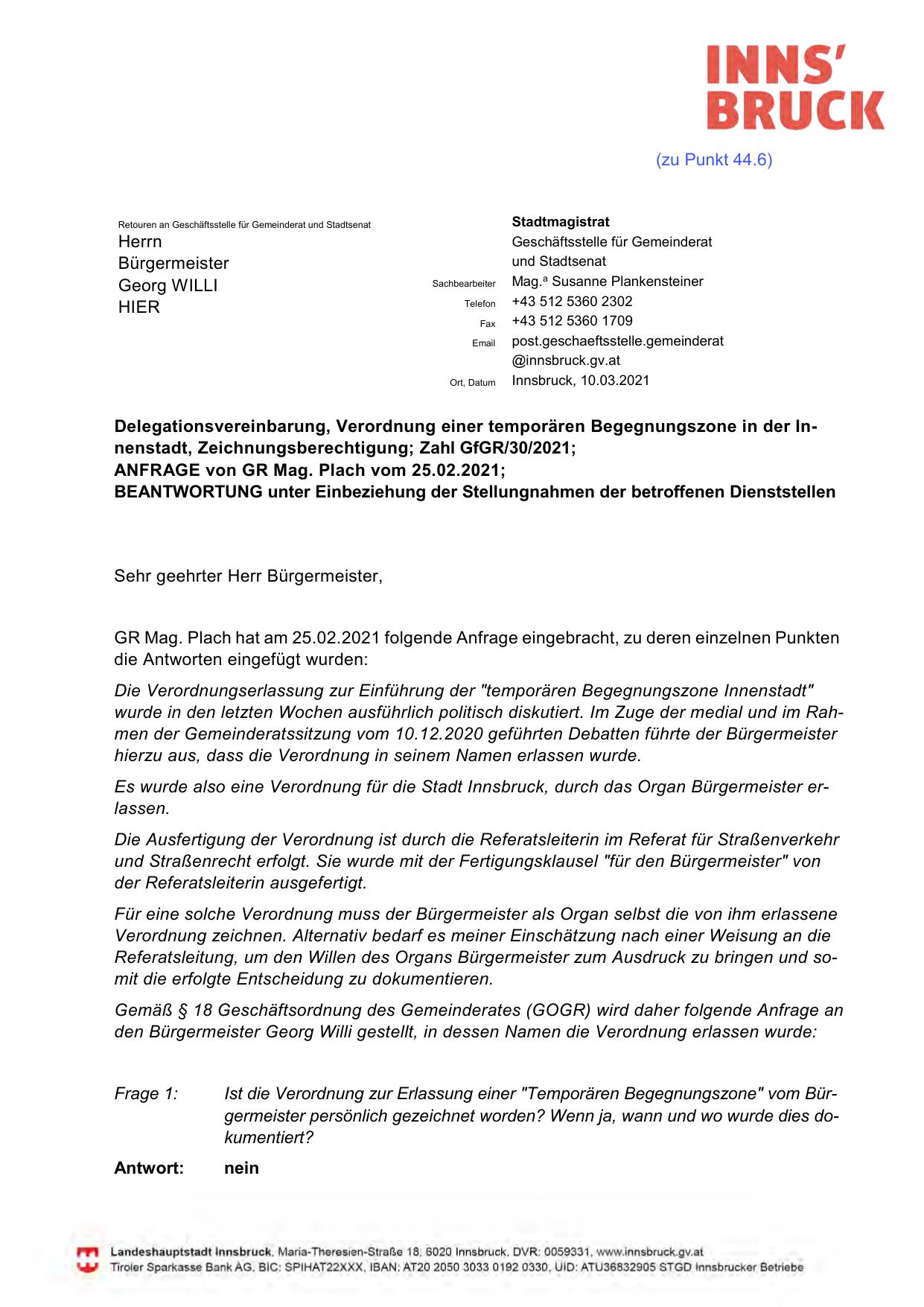 ANFRAGE von GR Mag. Plach vom 25.02.2021;