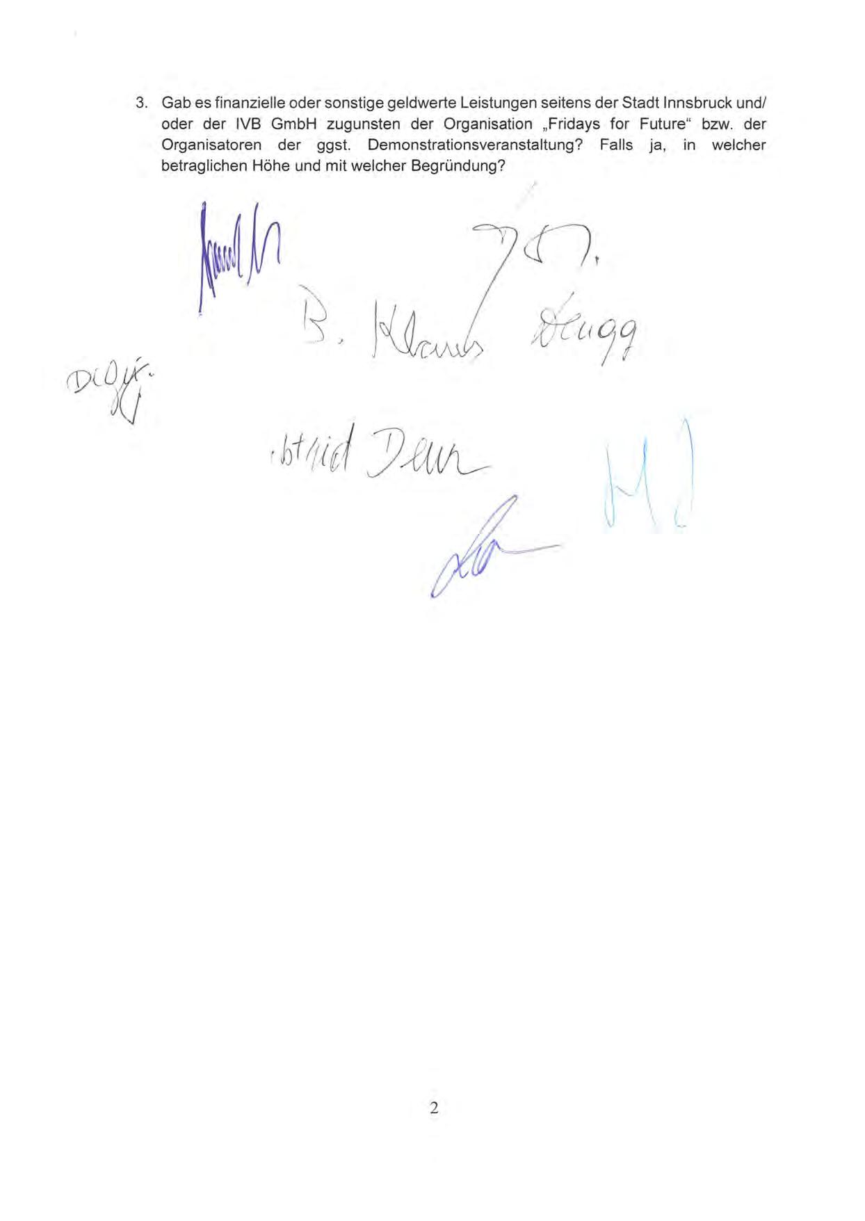 3. Gab es finanzielle oder sonstige geldwerte Leistungen seitens der Stadt Innsbruck und/