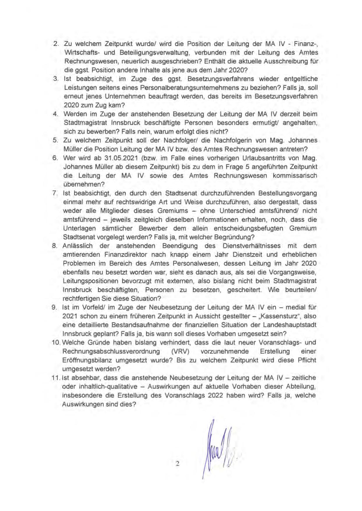 Innsbruck beschäftigten, Personen zu besetzen, gescheitert. Wie beurteilen/