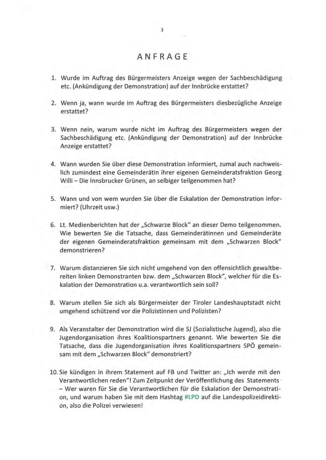etc. (Ankündigung der Demonstration) auf der lnnbrücke erstattet?