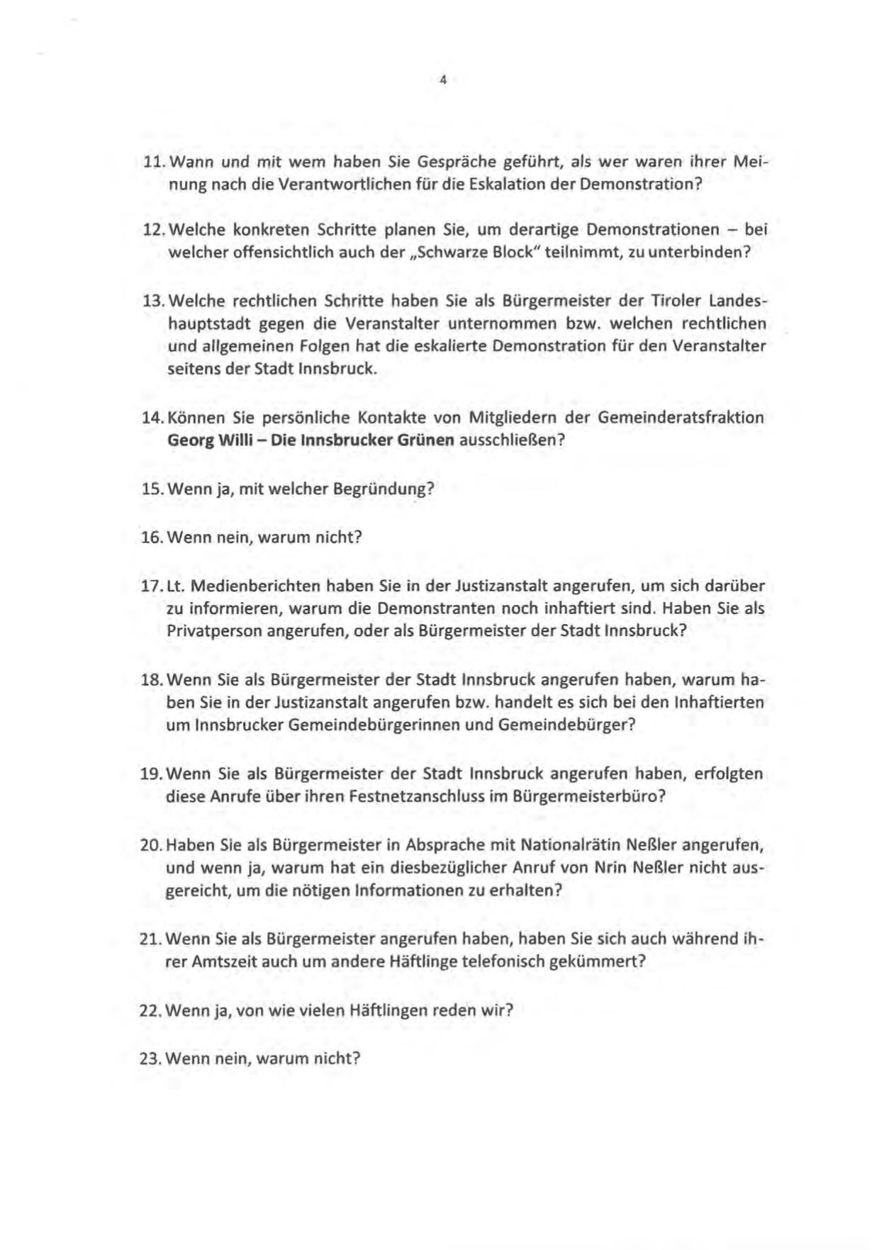 19. Wenn Sie als Bürgermeister der Stadt Innsbruck angerufen haben, erfolgten