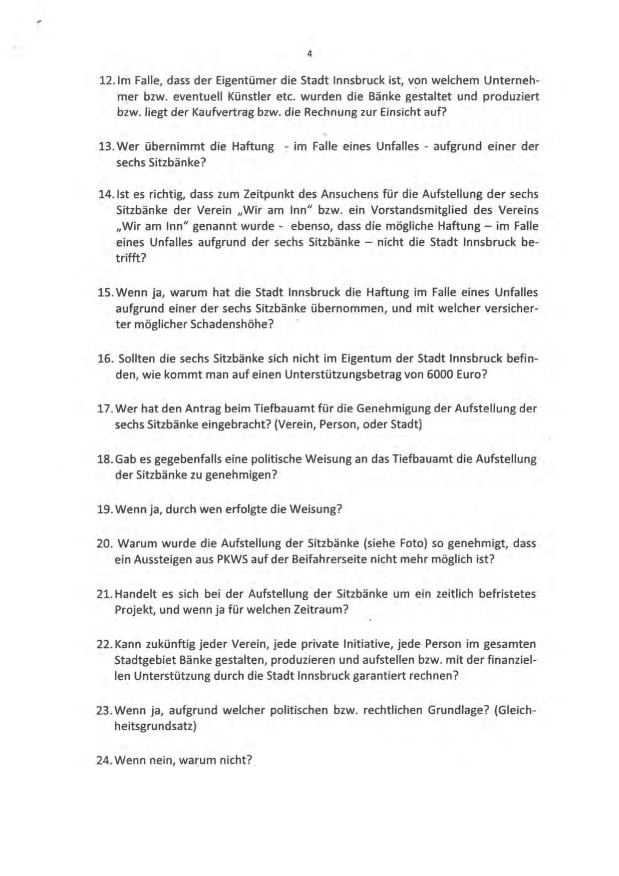 eines Unfalles aufgrund der sechs Sitzbänke - nicht die Stadt Innsbruck betrifft?