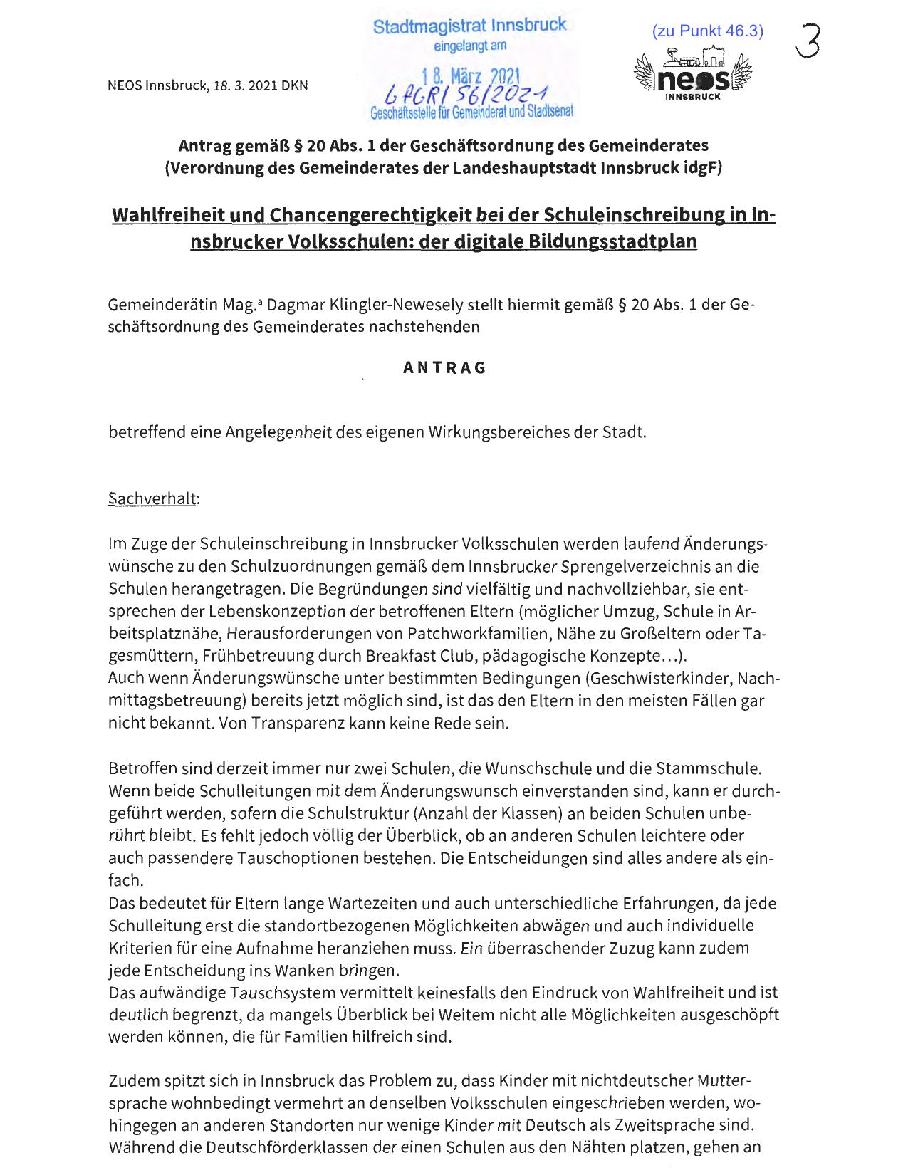 NEOS Innsbruck, 18. 3. 2021 DKN