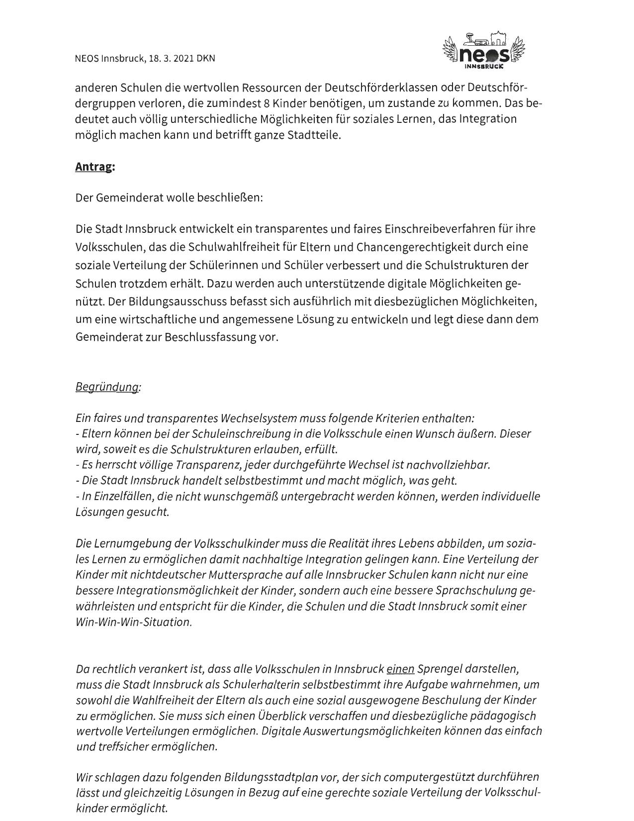 NEOS Innsbruck, 18. 3. 2021 DKN