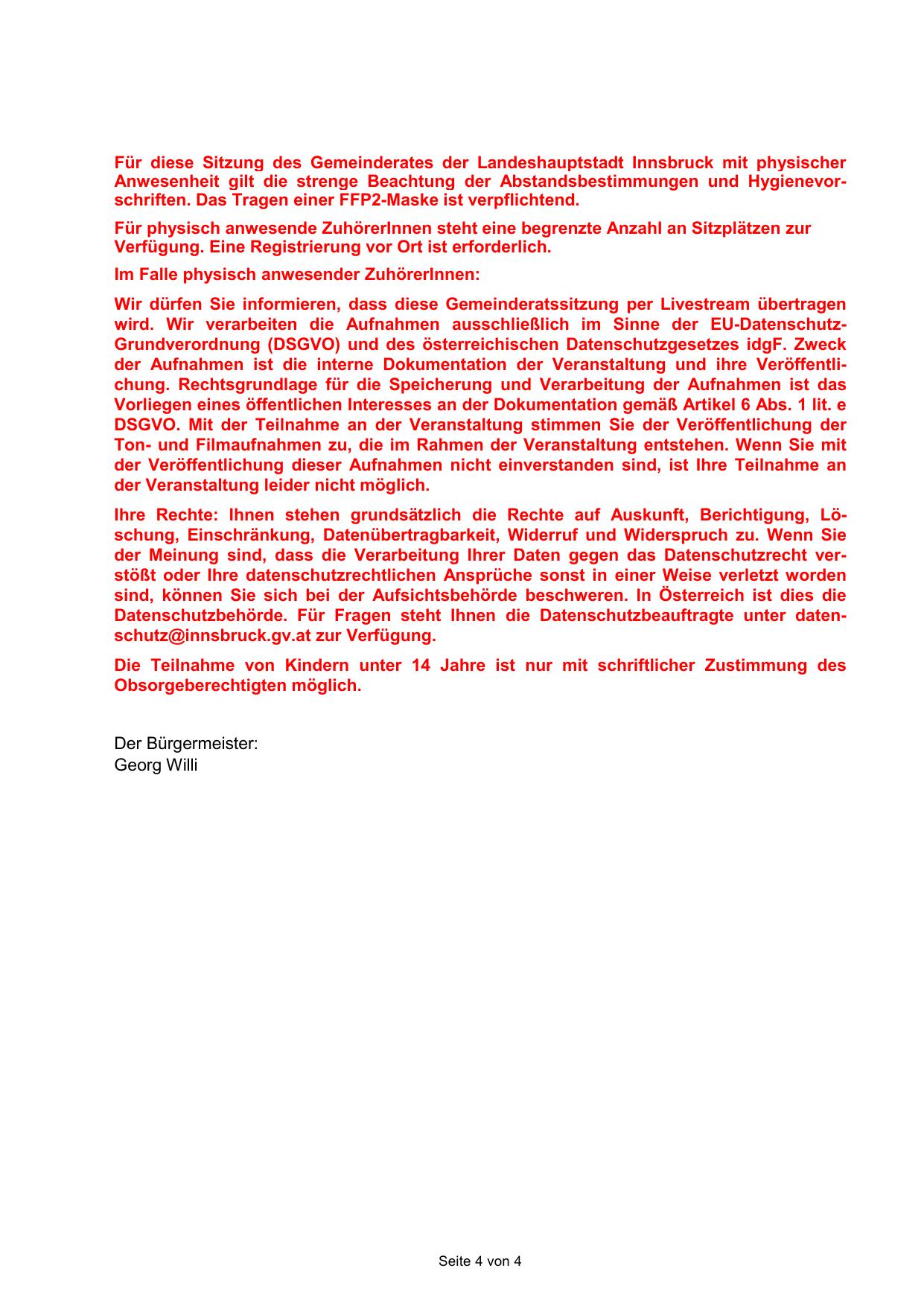 Für diese Sitzung des Gemeinderates der Landeshauptstadt Innsbruck mit physischer