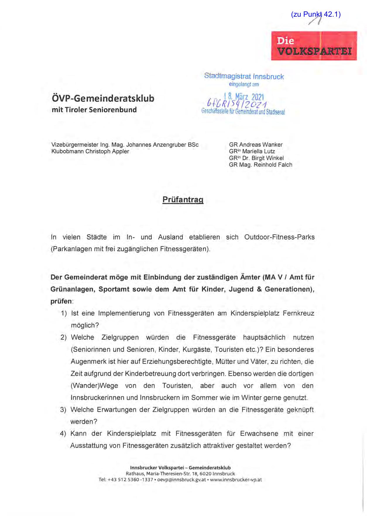 Tel: + 43 512 5360 -1337 • oevp@innsbruck.gv.at • w ww.innsbru cke r-vp.at