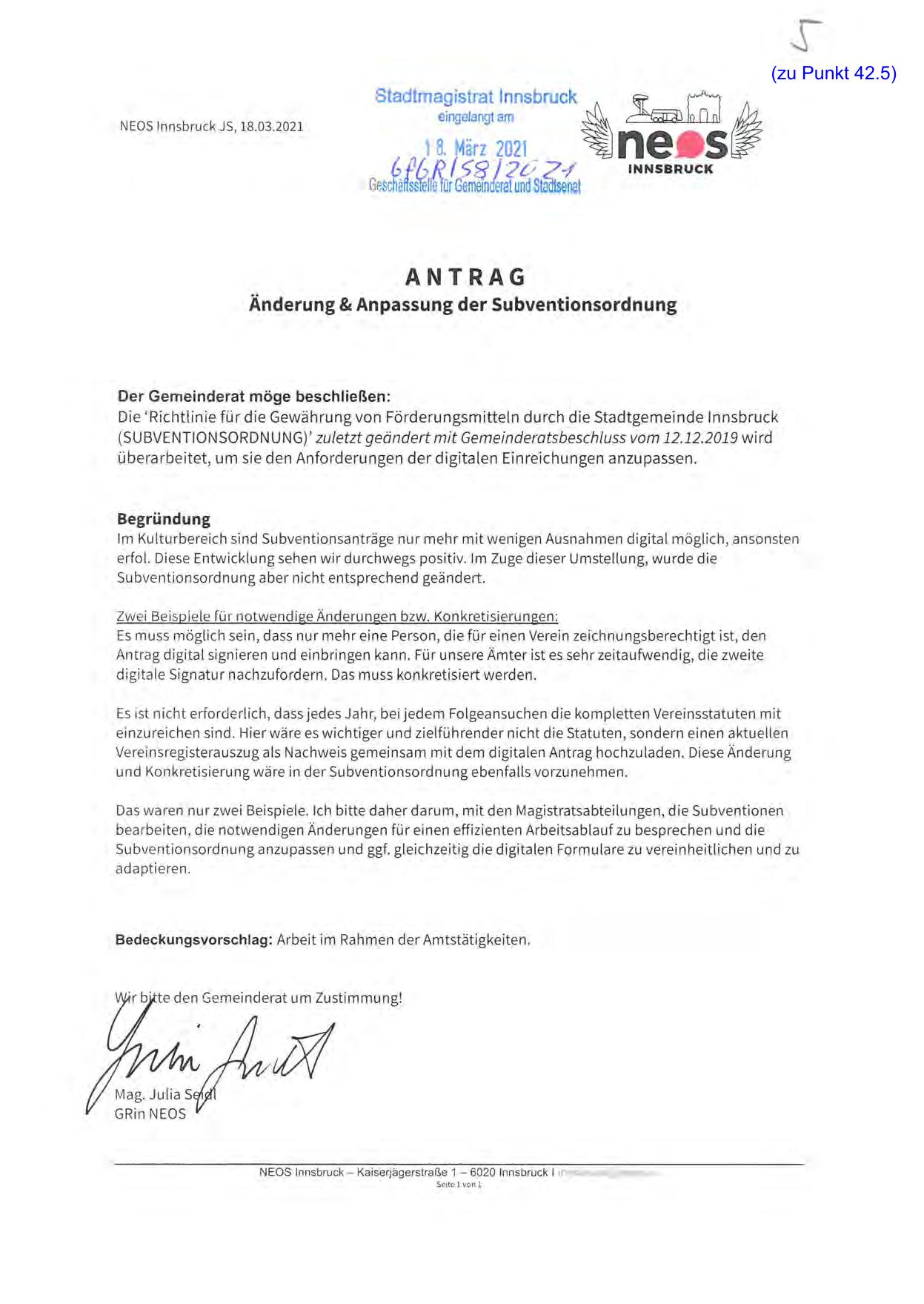 NEOS Innsbruck - Kaiserjägerstraße 1 - 6020 Innsbruck 1 1nnsbruck@neos.eu