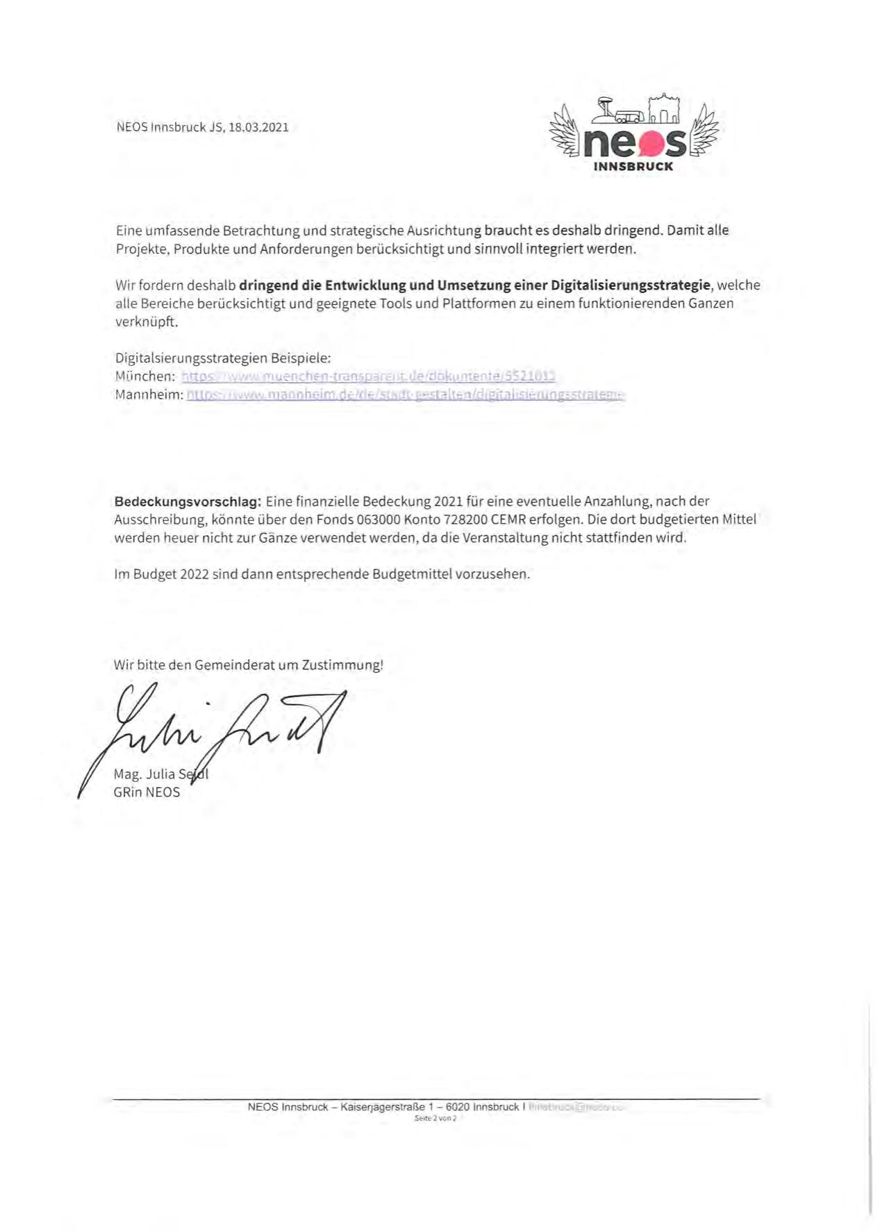 NEOS Innsbruck - Kaiserjägerstraße 1 - 6020 Innsbruck 1 1nnsbruck@neos eu