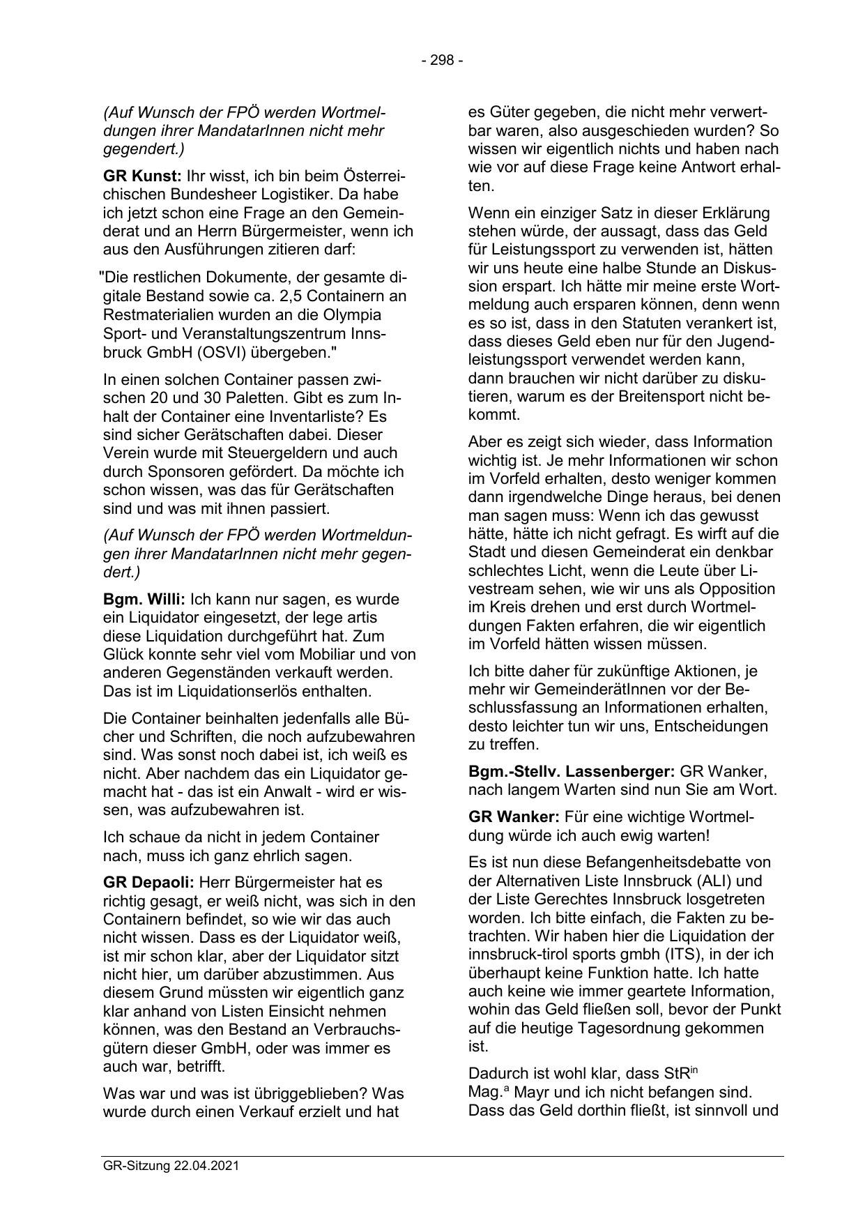 (Auf Wunsch der FPÖ werden Wortmeldungen ihrer MandatarInnen nicht mehr gegendert.)