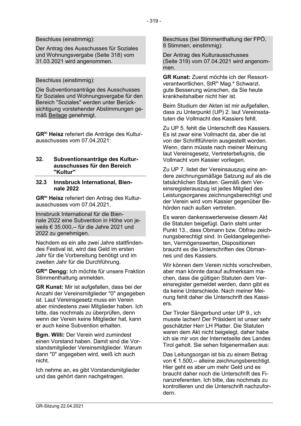 (Seite 319) vom 07.04.2021 wird angenommen.