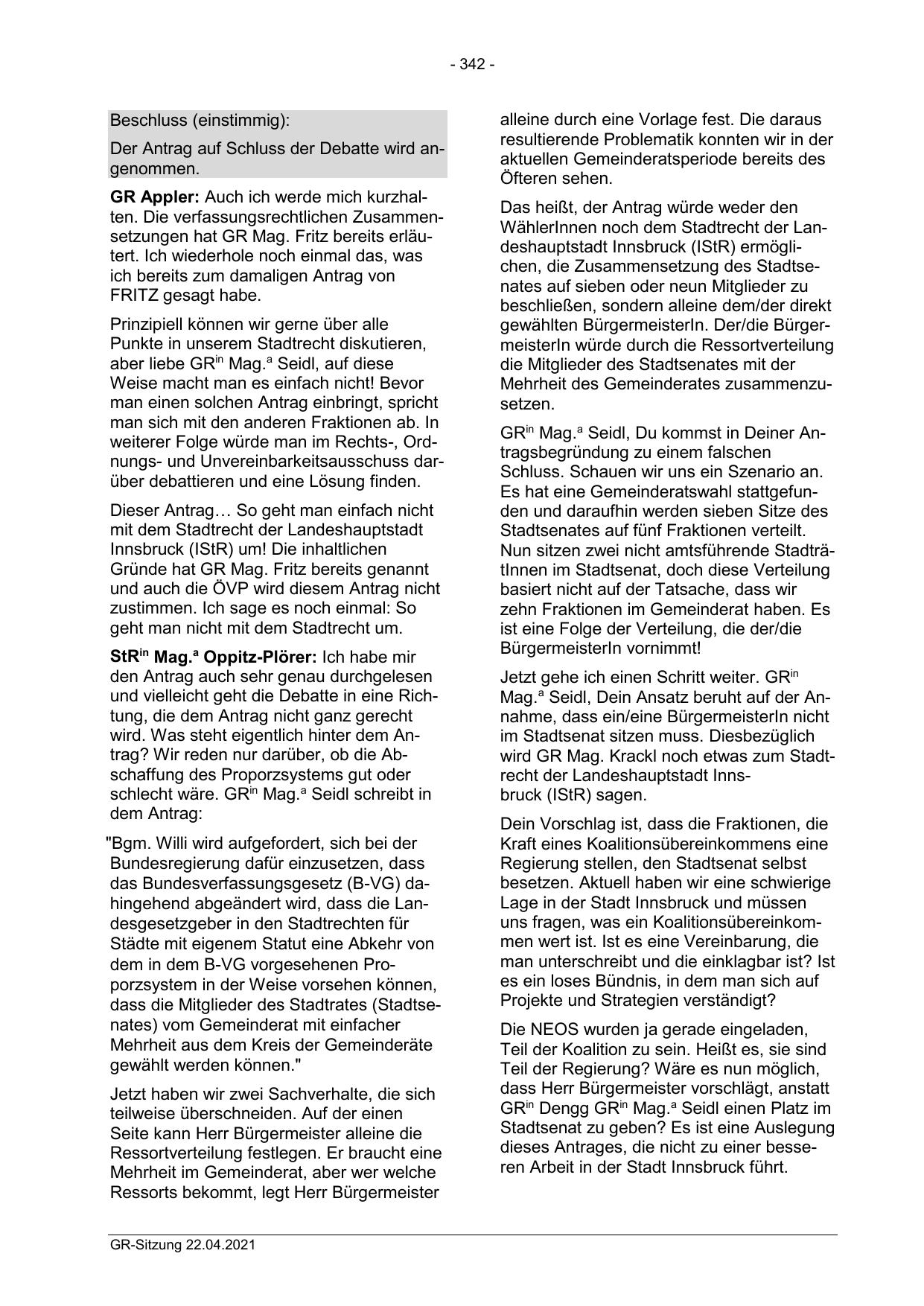 dieses Antrages, die nicht zu einer besseren Arbeit in der Stadt Innsbruck führt.