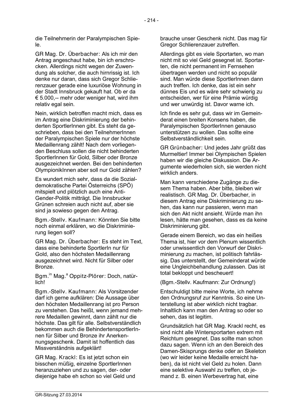 im Antrag eine Diskriminierung der behinderten SportlerInnen gibt. Es steht da geschrieben, dass bei den TeilnehmerInnen