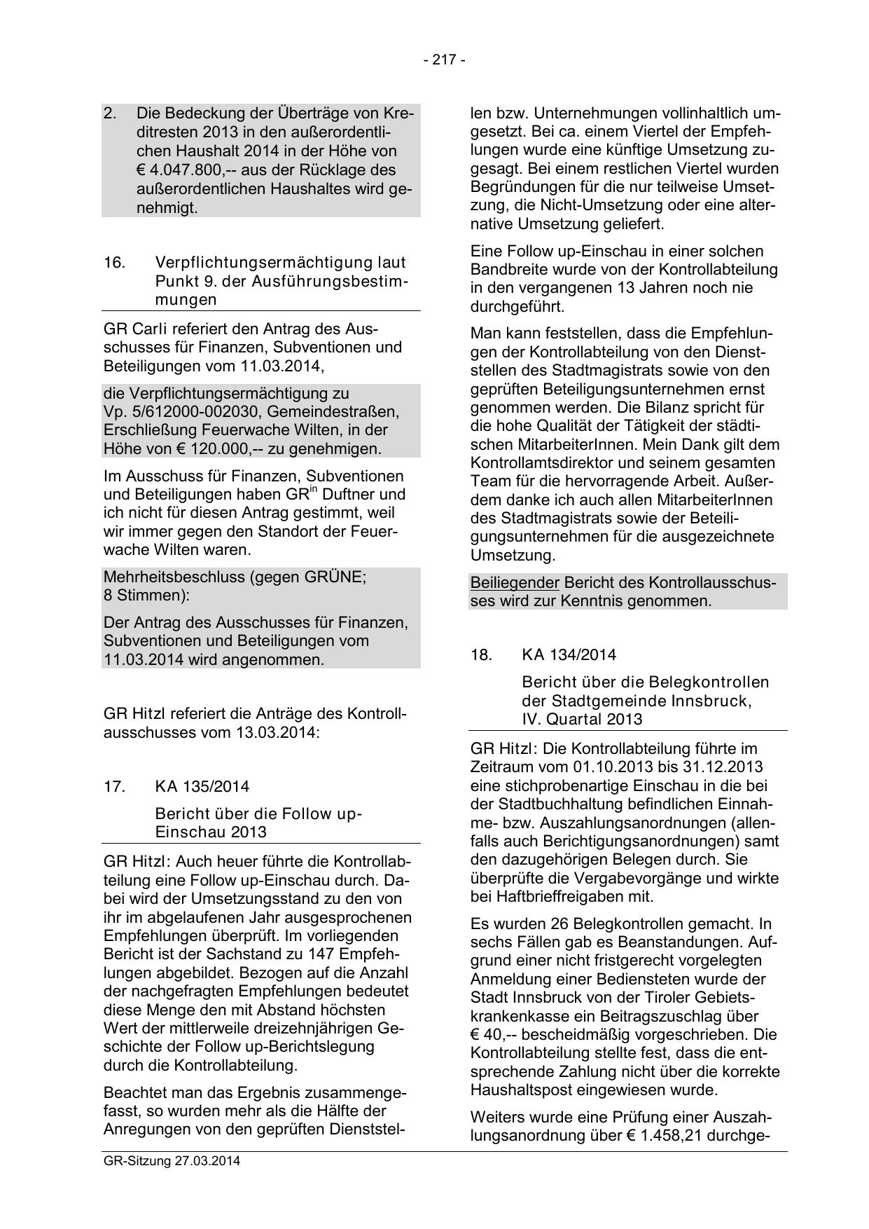 Anregungen von den geprüften DienststelGR-Sitzung 27.03.2014