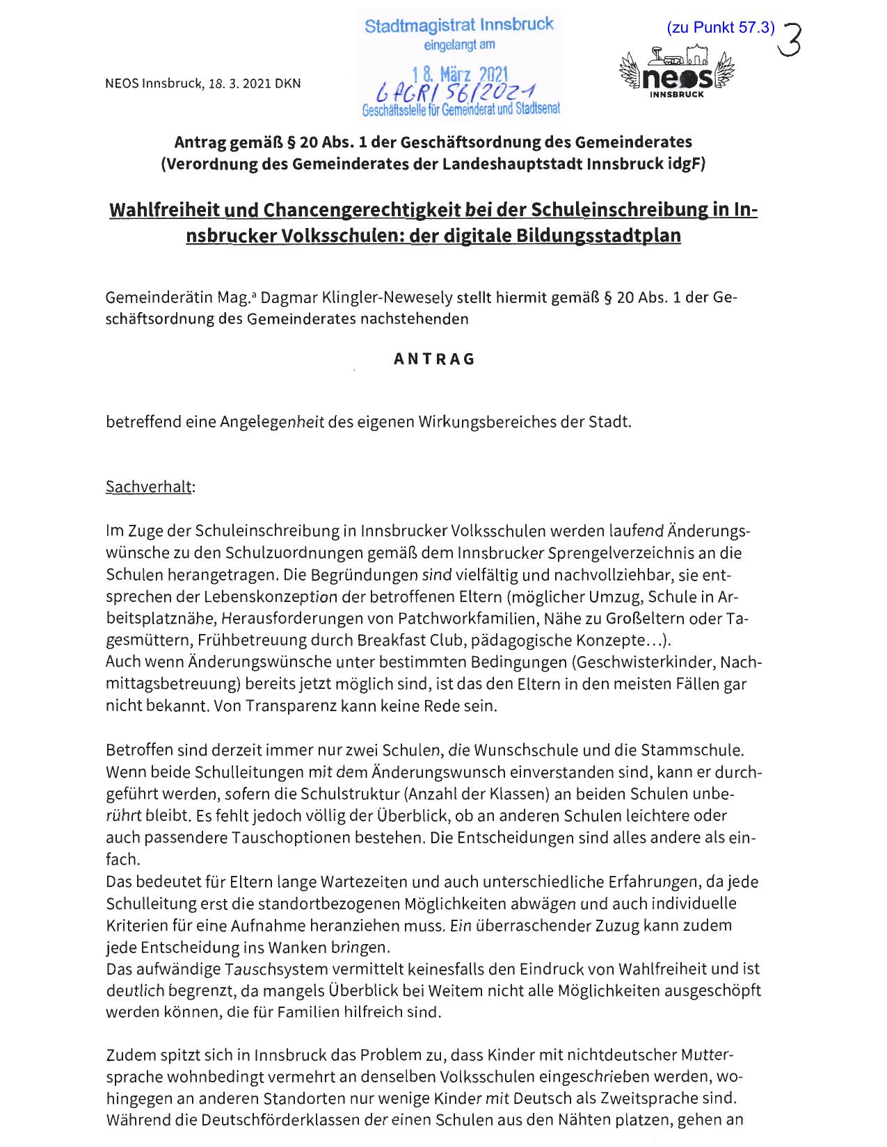 NEOS Innsbruck, 18. 3. 2021 DKN