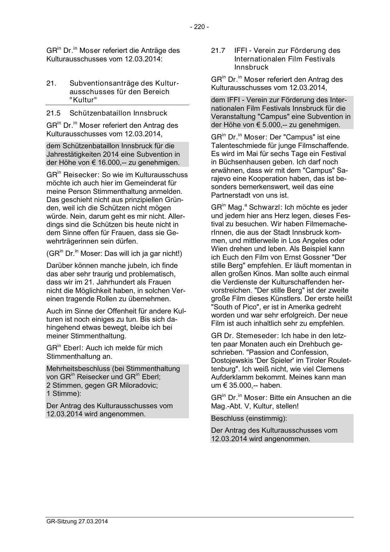 GRin Dr.in Moser: Bitte ein Ansuchen an die