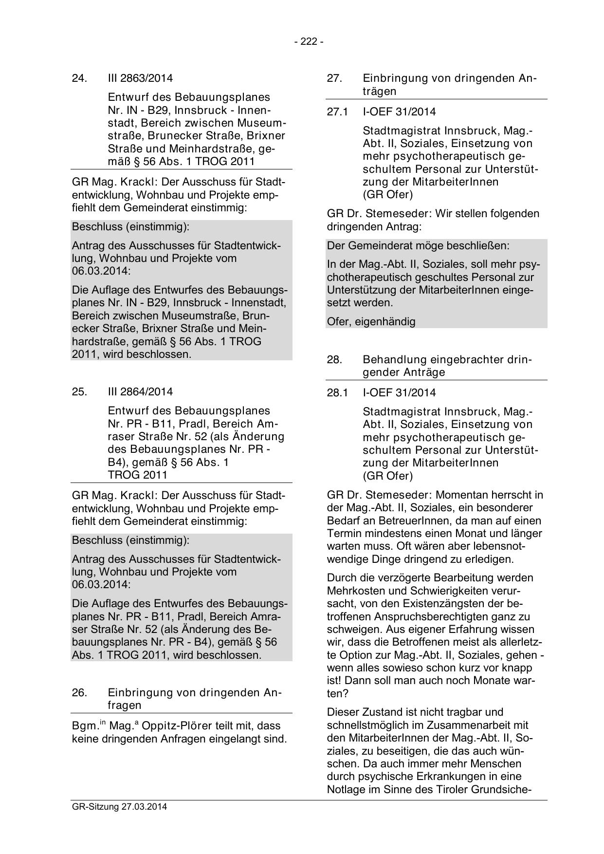 Stadtmagistrat Innsbruck, Mag.Abt. II, Soziales, Einsetzung von